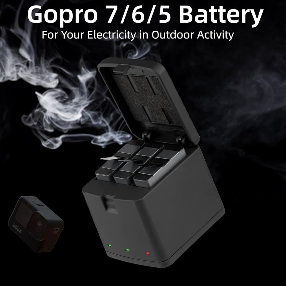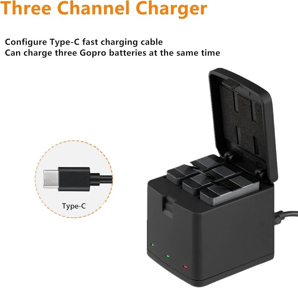 • 【شاحن ثلاثي القنوات】يمكن حمل شاحن بطارية فيميكو بسهولة وحماية بطارية جوبرو الخاصة بك. يمكنه شحن ثلاث بطاريات أصلية وبطاريات مخصصة من OEM في وقت واحد وبشكل مستقل عن أي مصدر طاقة من النوع C.