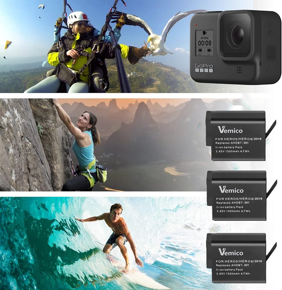 • 【المزيد من البطاريات المزيد من الصور】: تتميز كل بطارية فيميكو ببطارية ليثيوم أيون عالية الجودة 3*1500 مللي أمبير في الساعة 3.85 فولت 4.7 وات في الساعة مع خلايا ممتازة، بدون حمى أو توسيع أي من تأثير الذاكرة، بطاريات قابلة لإعادة الشحن تدوم طويلاً للحفاظ على تصوير gopro الخاص بك في كل لحظات سريعة الزوال.