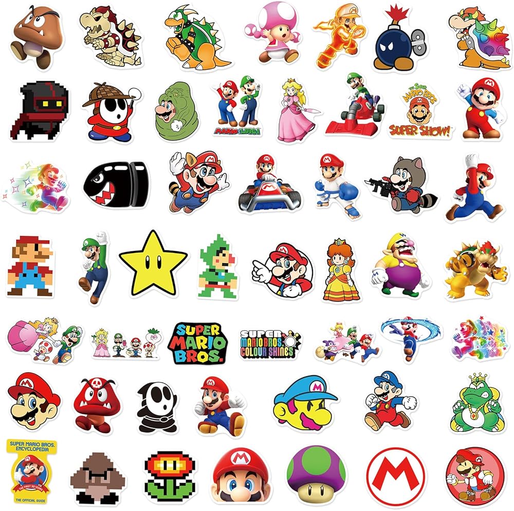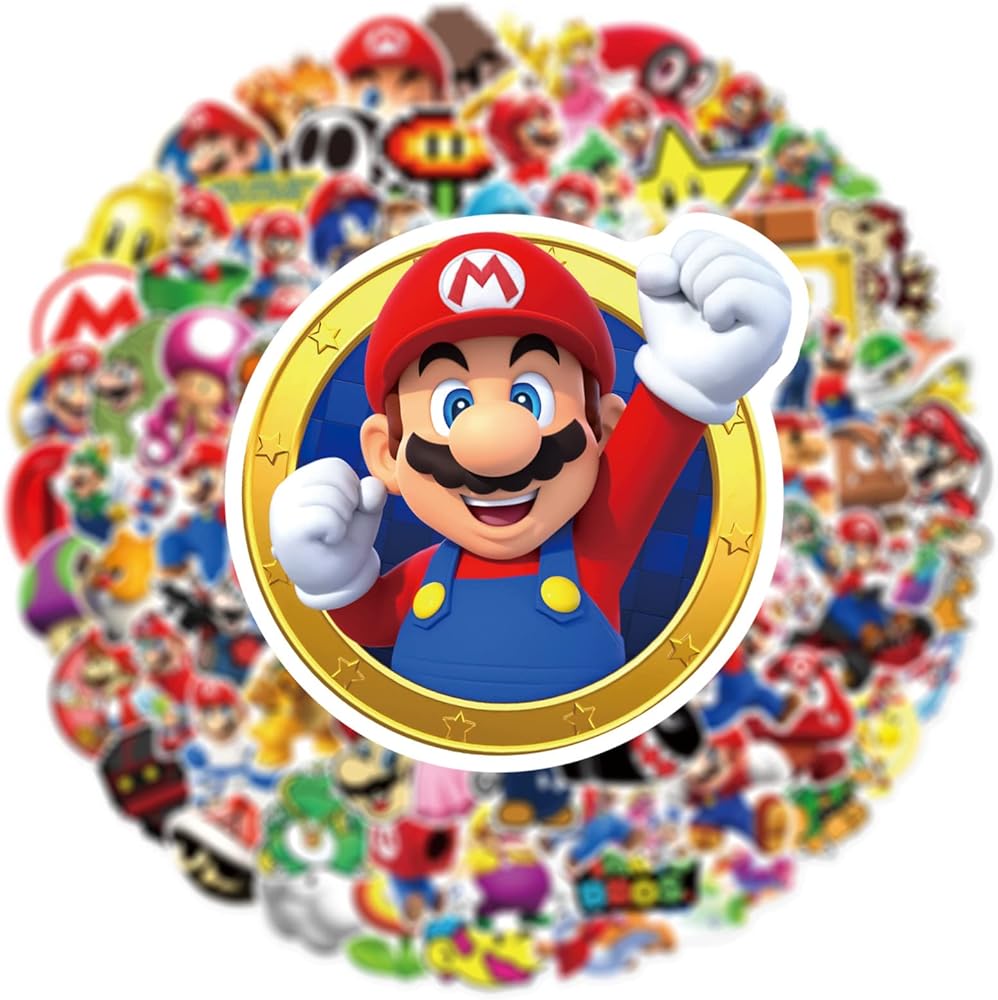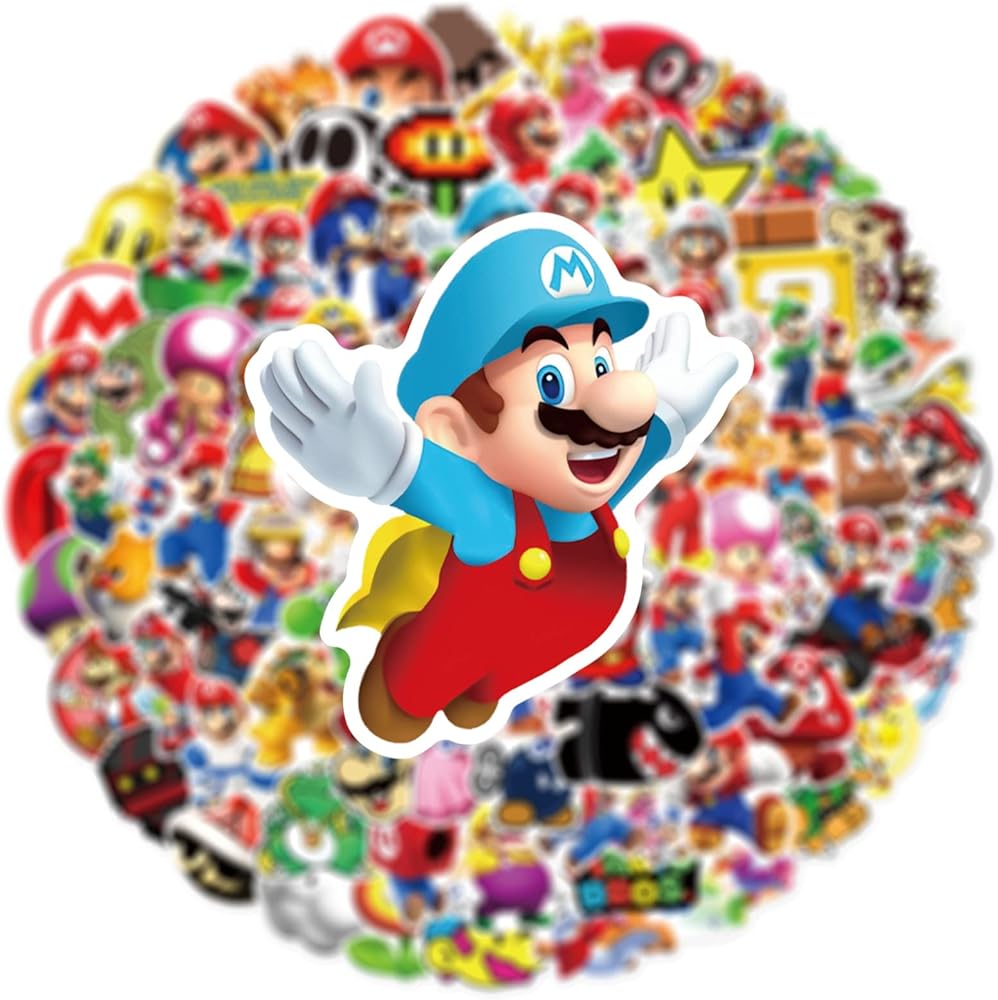 100 قطعة من ملصقات الرسوم المتحركة ماريو بروس للأطفال والمراهقين، ملصقات ألعاب رائعة لزجاجة المياه ولوح التزلج ملصق فينيل عصري للهاتف واللابتوب والدراجة وحقيبة السفر