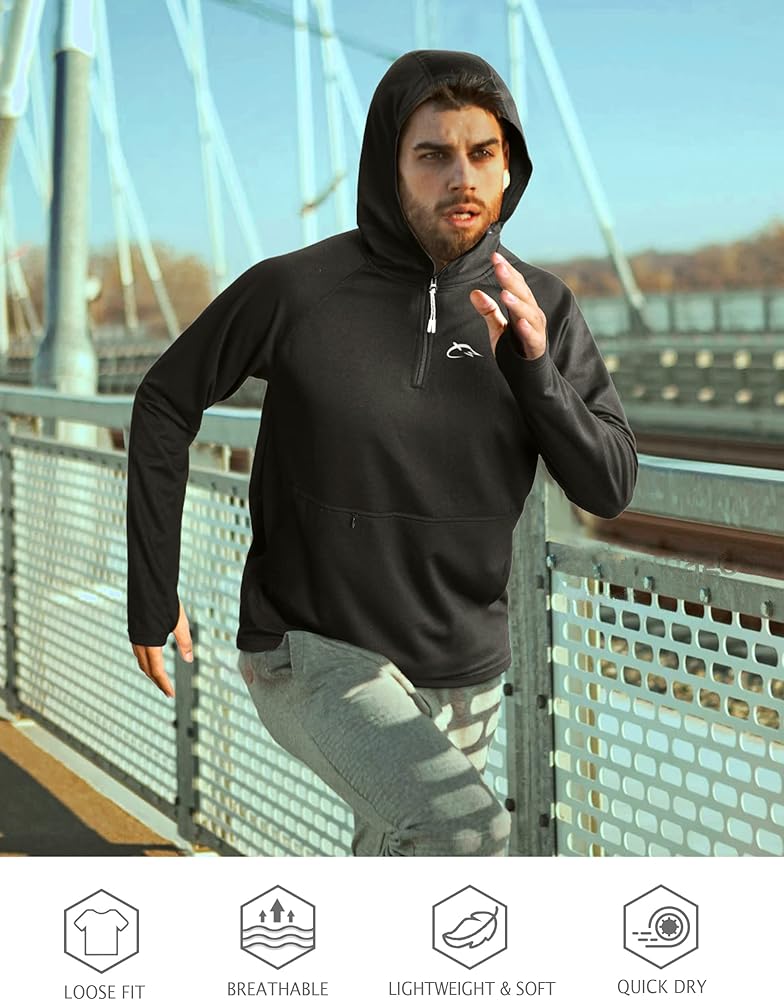 نمط لا تشوبه شائبة: تم تصميم السترة ذات القلنسوة بسحاب 1/4 مع صورة ظلية مريحة وياقة على شكل رقبة وهمية. مع ياقة ربع بسحاب مرنة بما يكفي للارتداء لأعلى أو لأسفل لمزيد من الدفء حسب الحاجة، مما يوفر حماية رائعة من الطبقة الخارجية أو المتوسطة ضد البرد في الطقس البارد.