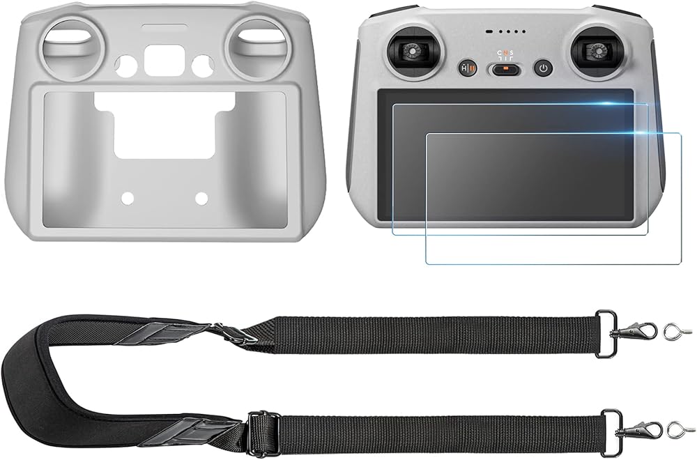 غطاء حماية من السيليكون Mini 3 Pro RC Control + طبقة حماية للشاشة من الزجاج المقوى (قطعتان) + حبل للرقبة/حزام لملحقات DJI Mini 3 Pro/Mini 3/Mavic 3 Classic/Mavic 3 Pro