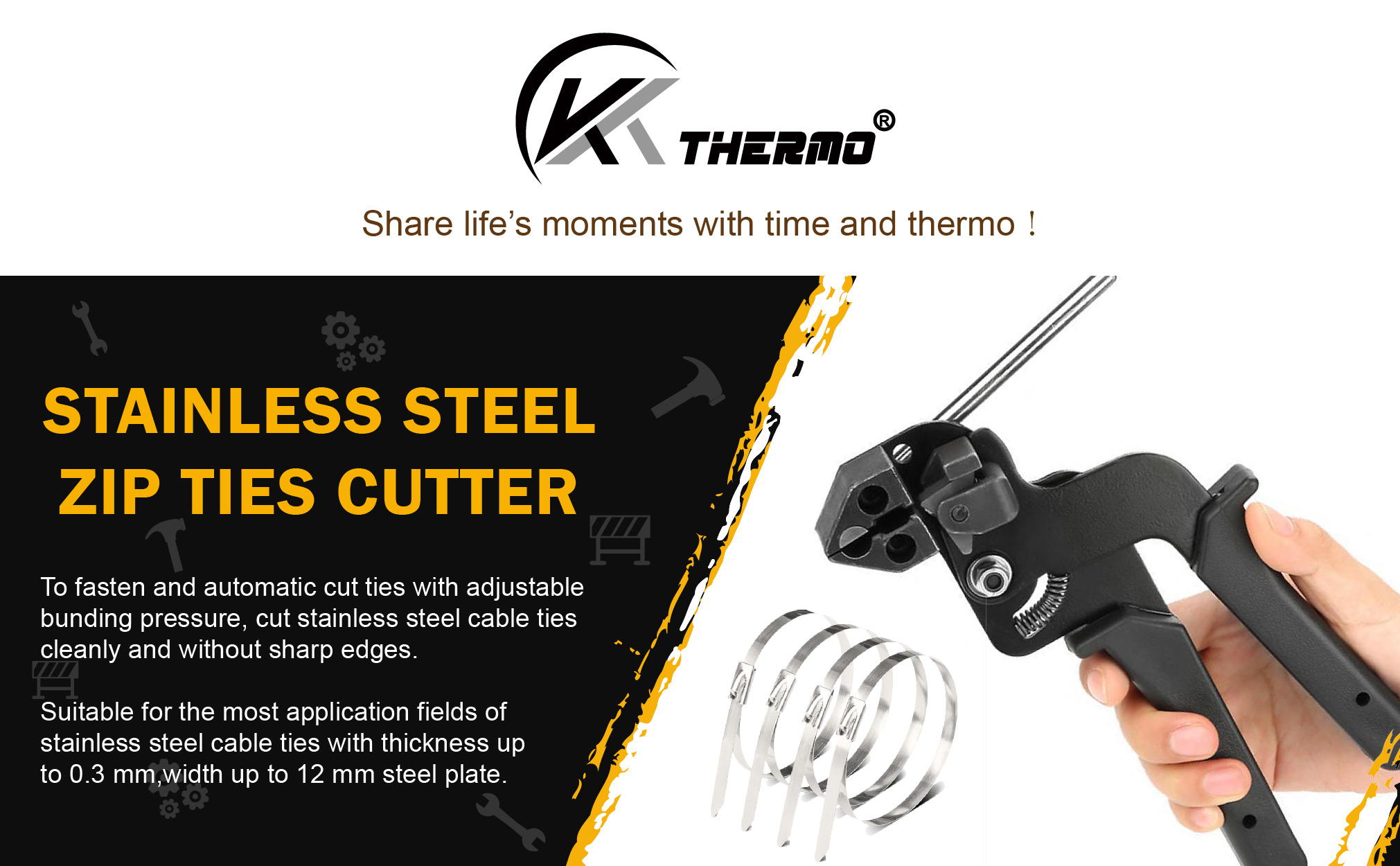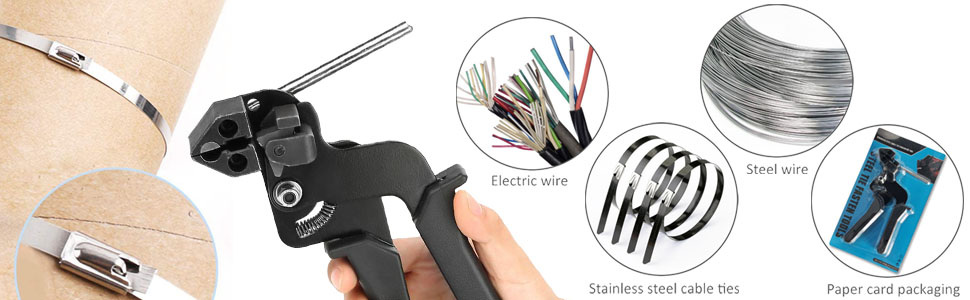 - مناسبة لمعظم مجالات تطبيق روابط الكابلات المصنوعة من الفولاذ المقاوم للصدأ بسماكة تصل إلى 0.3 مم وعرض يصل إلى 12 مم.