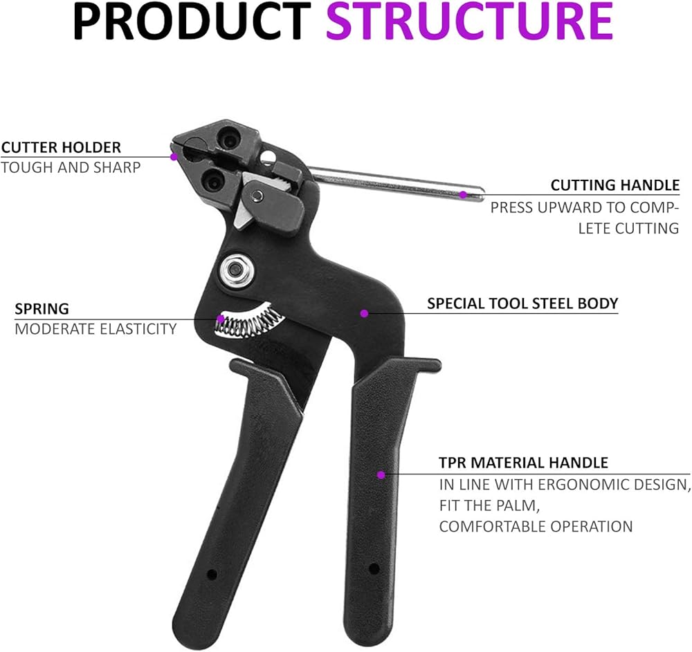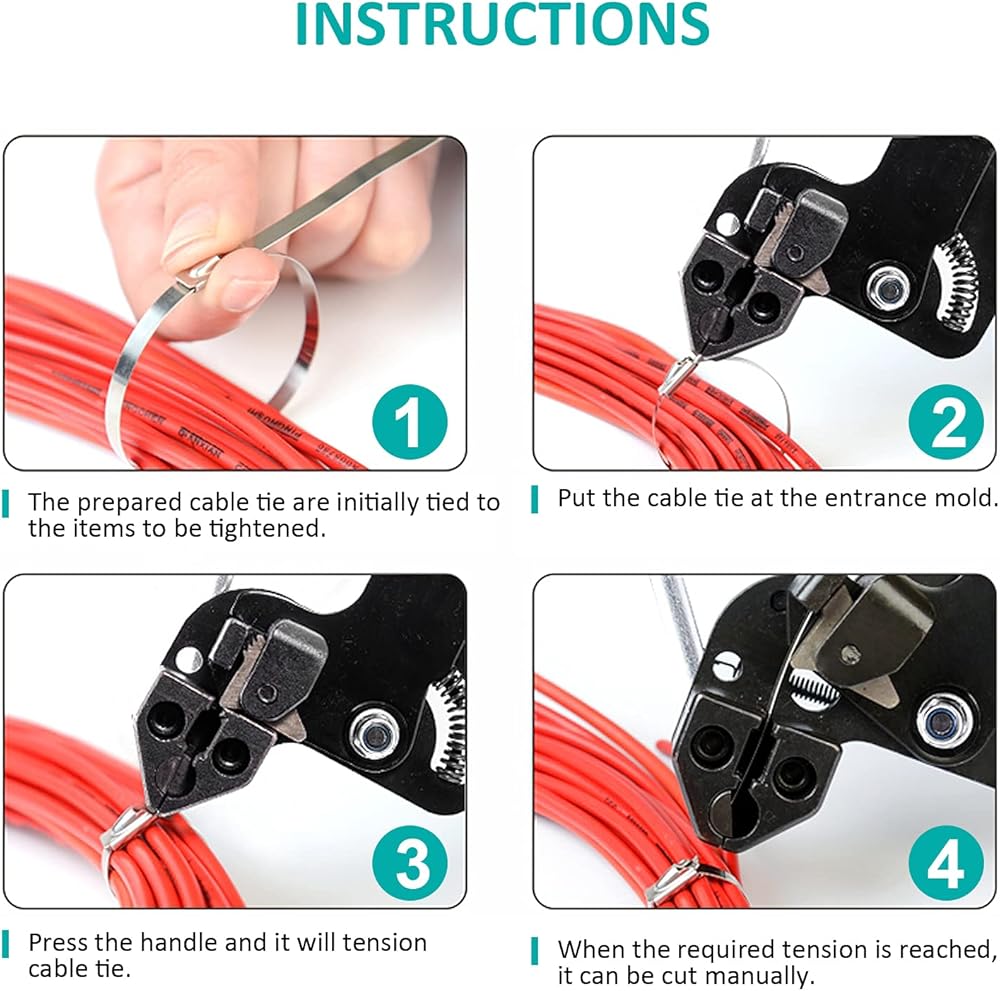 - لربط الروابط وقطعها تلقائيًا مع ضغط ربط قابل للتعديل، قم بقطع روابط الكابلات المصنوعة من الفولاذ المقاوم للصدأ بشكل نظيف وبدون حواف حادة.