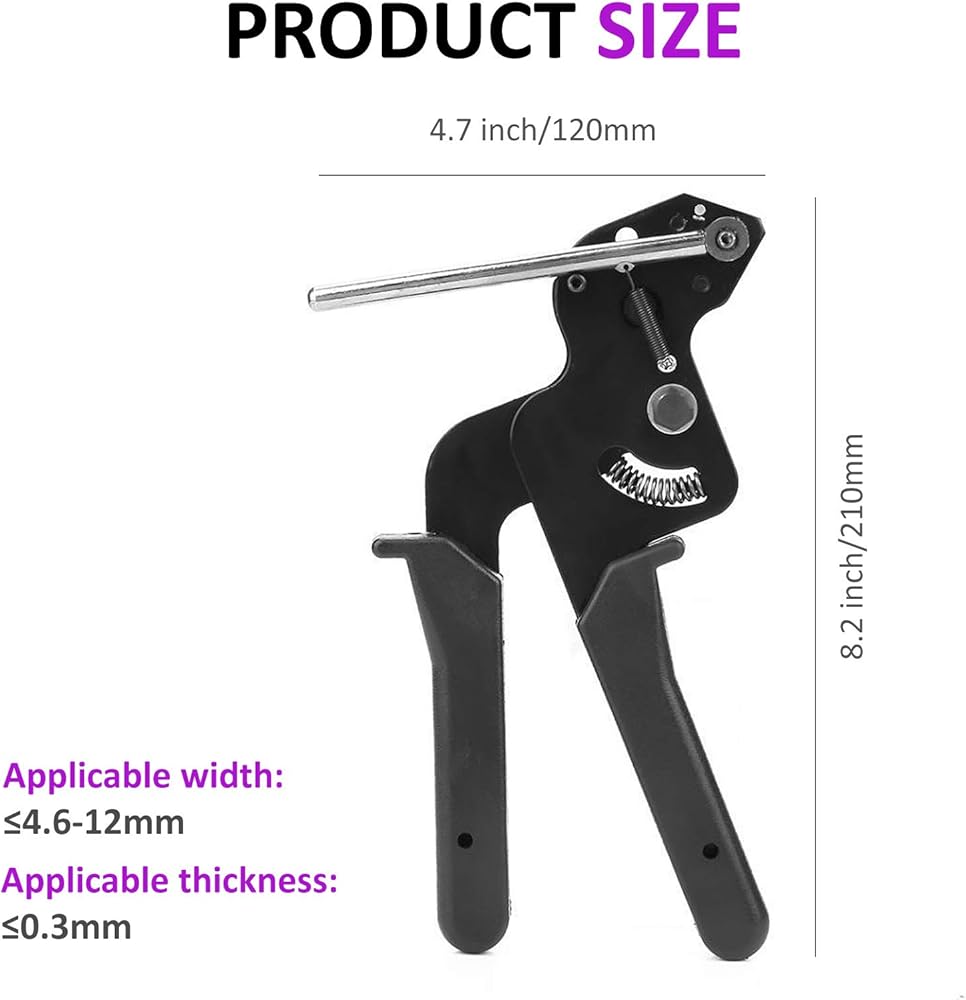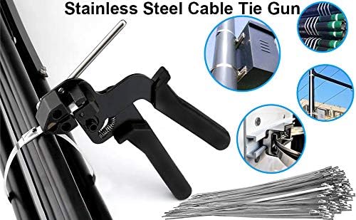 قاطع روابط بسحاب من الفولاذ المقاوم للصدأ، مسدس ربط الكابلات، أداة شد ربط الرمز البريدي، مسدس ربط معدني لقطع روابط الكابلات من الفولاذ المقاوم للصدأ (أسود)
