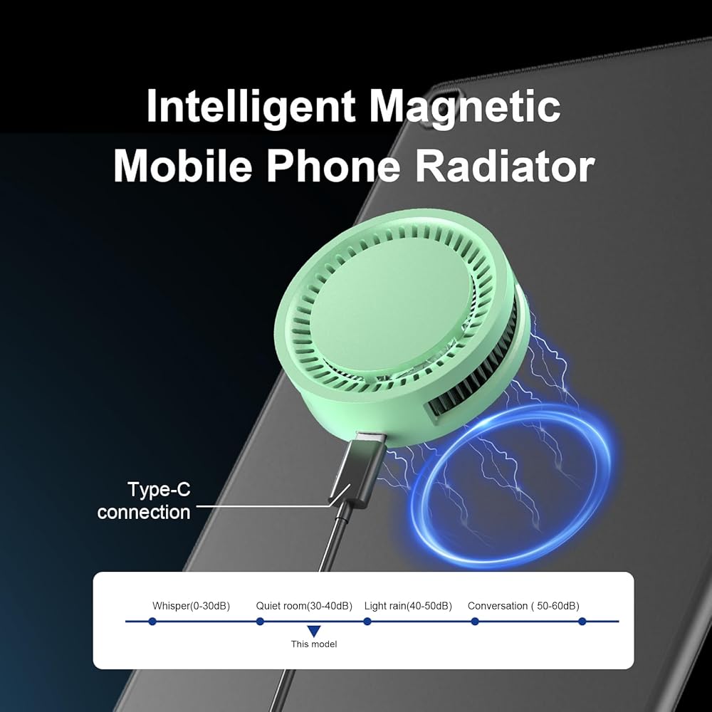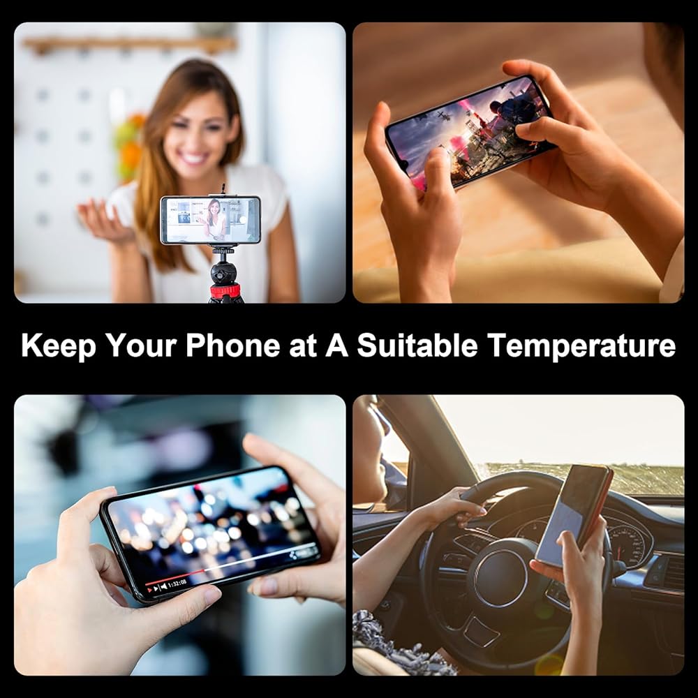 【سهلة الاستخدام】 استخدم واجهة 5 فولت من النوع C للاتصال لبدء تشغيل مبرد الهاتف المحمول، والتبريد السريع في 3 ثوانٍ، وضوضاء منخفضة للغاية 30 ديسيبل. مناسب للاستخدام في السيارات الساخنة وعند تحذير درجة حرارة الآيفون.