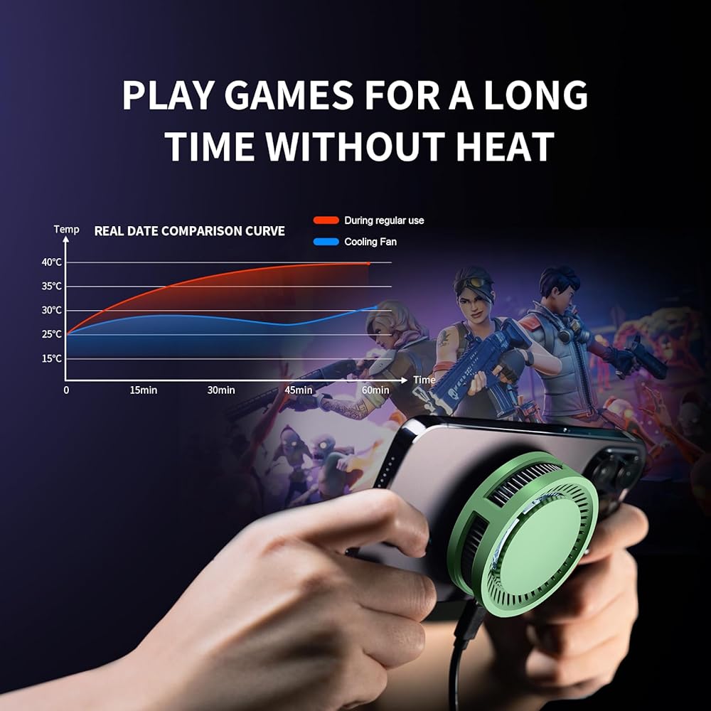 【تقنية جديدة تمامًا】 يستخدم مبرد الهاتف الخلوي مزيجًا من وحدات أشباه الموصلات ومراوح توربو لتبريد الهواتف المحمولة والأجهزة اللوحية المحمولة الخاصة بك بسرعة عالية وبهدوء، مما يسمح لك ببث الألعاب مباشرة على هاتفك المحمول دون الحاجة إلى القلق بشأن الحرارة.