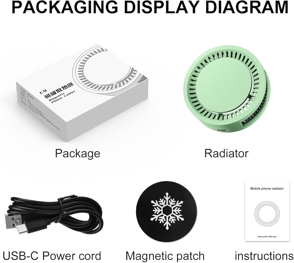 【مزيد من التوافق】 يستخدم مشعاع الهاتف وضع اتصال مغناطيسي ومتوافق مع أي نوع من الأجهزة المحمولة. ملحوظة: يمكن توصيل موديلات iPhone 12 والإصدارات الأحدث مباشرة بمبرد iPhone من خلال Magsafe. بالنسبة لمستخدمي الموديلات الأخرى، نقوم بتضمين صفيحة حديدية معدنية قابلة للالتصاق في العبوة، والتي تُرضي تمامًا مستخدمي أي طراز.