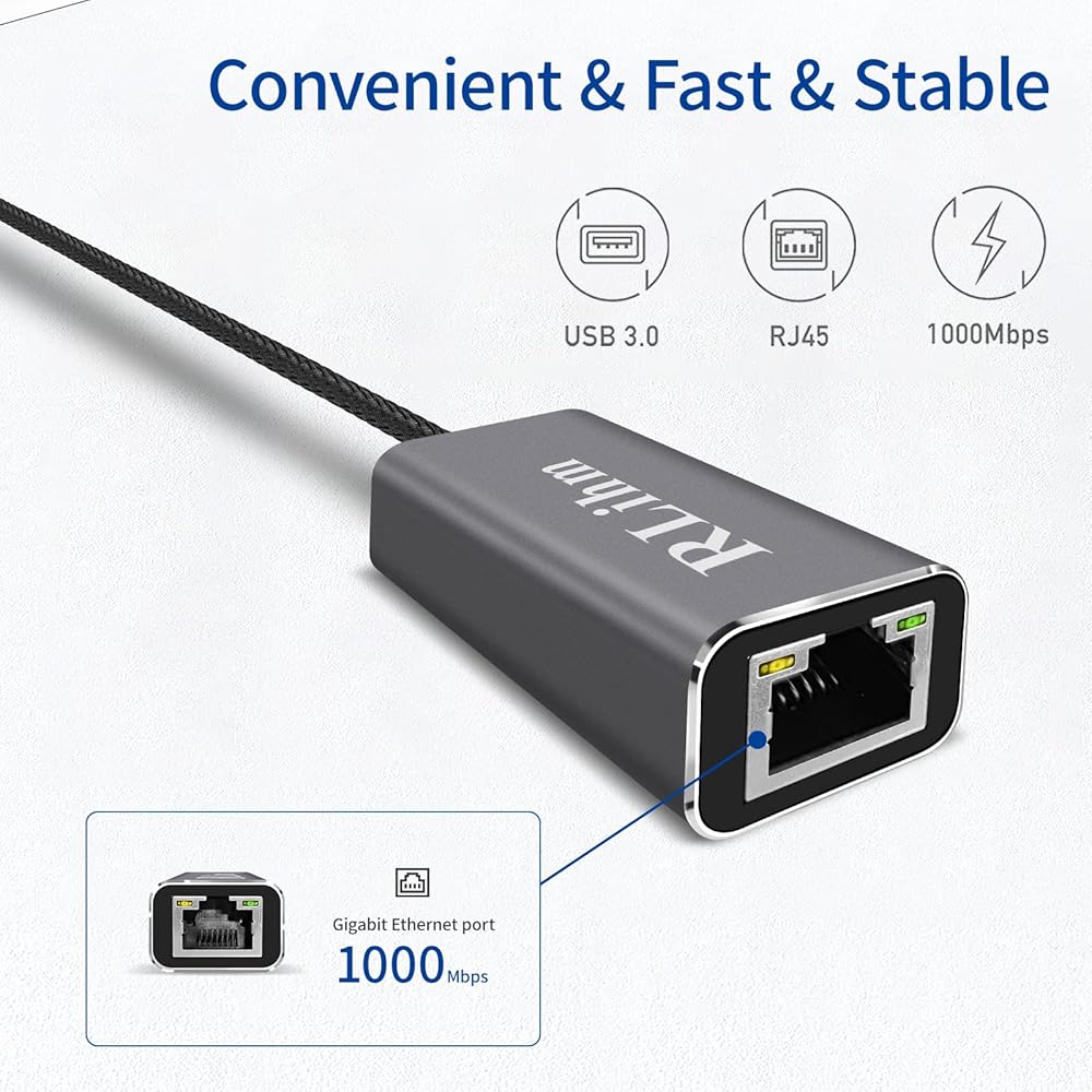 محول USB إلى إيثرنت، USB 3.0 إلى 10/100/1000 ميجابت في الثانية محول شبكة جيجابت إيثرنت LAN، محول إنترنت RLihm Gigabit RJ45، محول إيثرنت USB للتوصيل والتشغيل، متوافق مع نظام التشغيل Mac OS، Windows7/8/10/11، XP