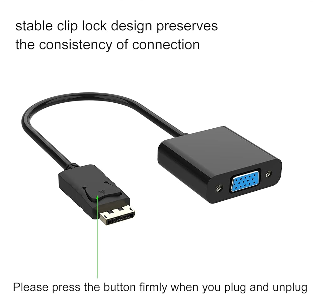 قم بتوصيل واجهة منفذ العرض الخاصة باللاب توب والكمبيوتر المكتبي بواجهة VGA لأجهزة العرض مثل أجهزة العرض والشاشات وأجهزة التلفزيون وما إلى ذلك. حتى تتمكن من العمل بشكل صحيح