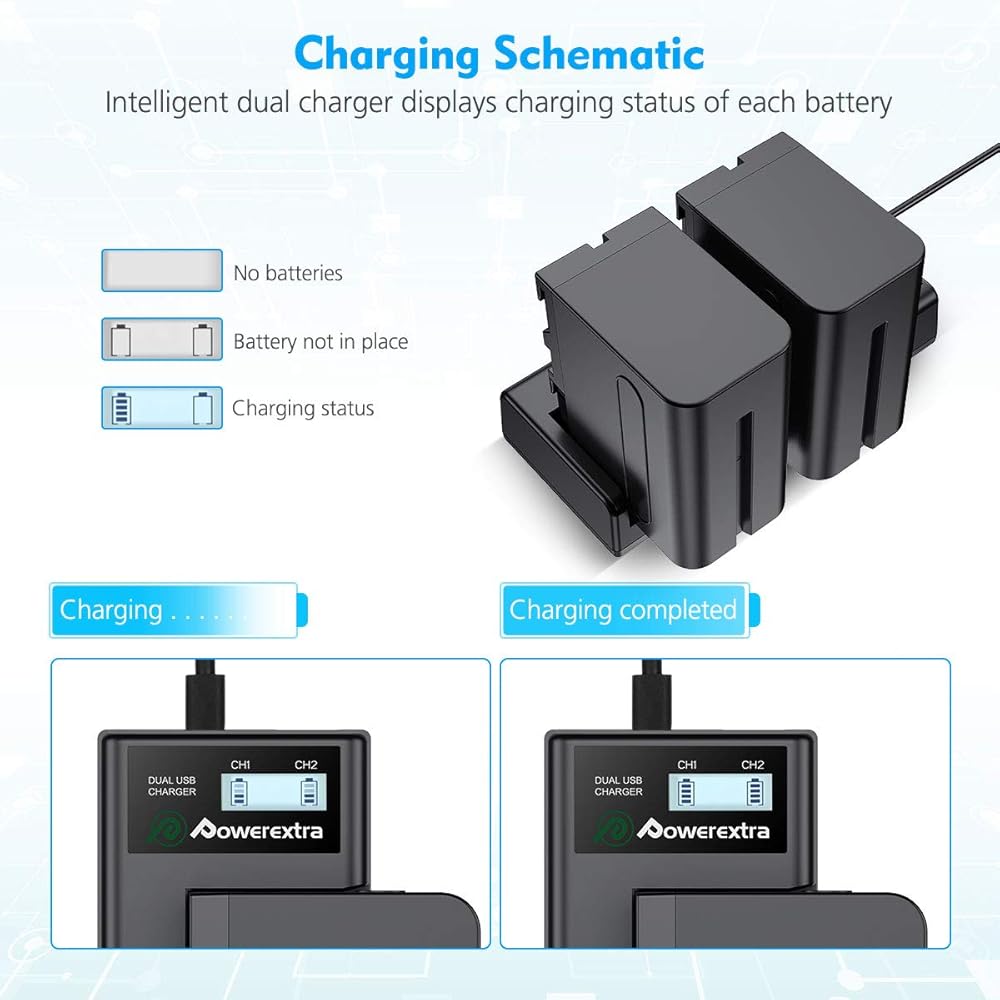 جودة فائقة وشحن آمن: يتم دمج شاحن بور اكسترا NPF550 NPF570 NPF750 NPF770 NP F970 NPF960 NP975 مع أحدث جيل من التحكم في وحدة المعالجة المركزية ورقاقة IC ولوحة PCB مزدوجة الميزات مع f