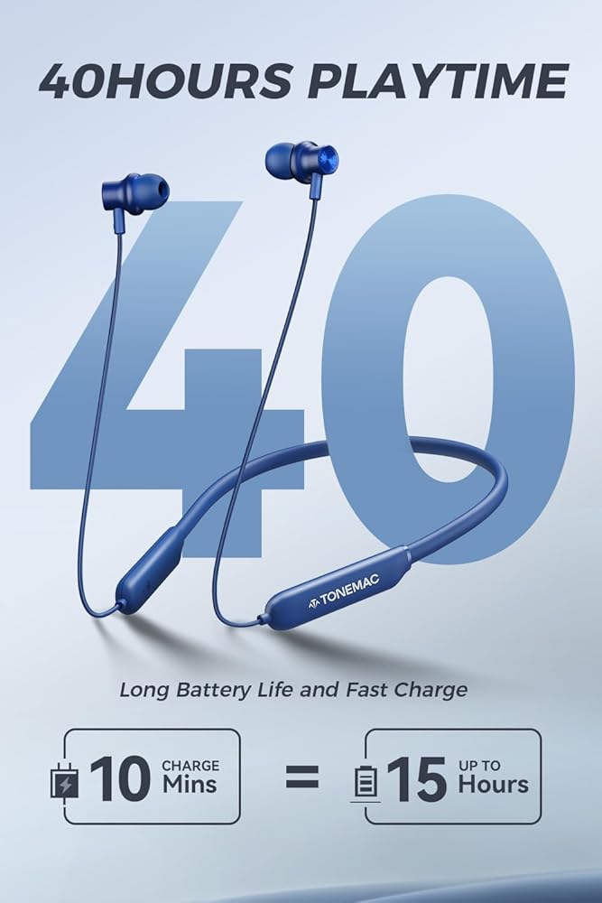 【 وقت تشغيل لمدة 40 ساعة】احصل على ما يصل إلى 40 ساعة من وقت التشغيل بشحنة واحدة، واستمتع بـ 15 ساعة من وقت اللعب مع 10 دقائق فقط من الشحن السريع USB-C.