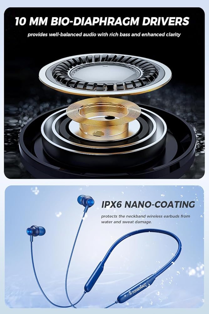 【 جودة صوت لا مثيل لها 】 استمتع بصوت واضح للغاية مع صوت جهوري متوازن بشكل جيد ووضوح معزز مع محركات الحجاب الحاجز الحيوي مقاس 10 مم من TONEMAC ونقل الصوت بدون فقدان بلوتوث 5.3.