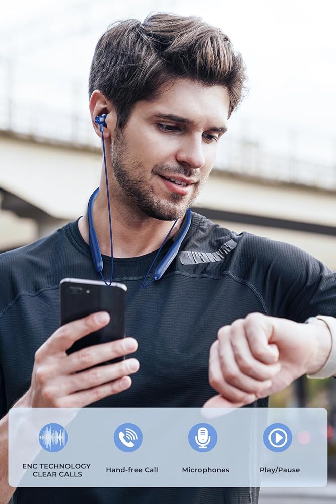 سماعات بلوتوث - سماعات أذن لاسلكية N8 مع شريط عنق مغناطيسي | وقت تشغيل يصل إلى 40 ساعة، مقاومة للتعرق IPX6، سماعة رأس عميقة للمكالمات الهاتفية والموسيقى والرياضة - أزرق
