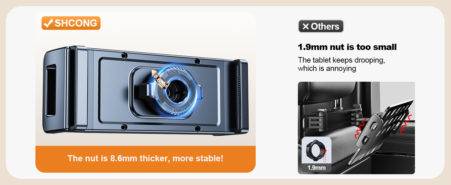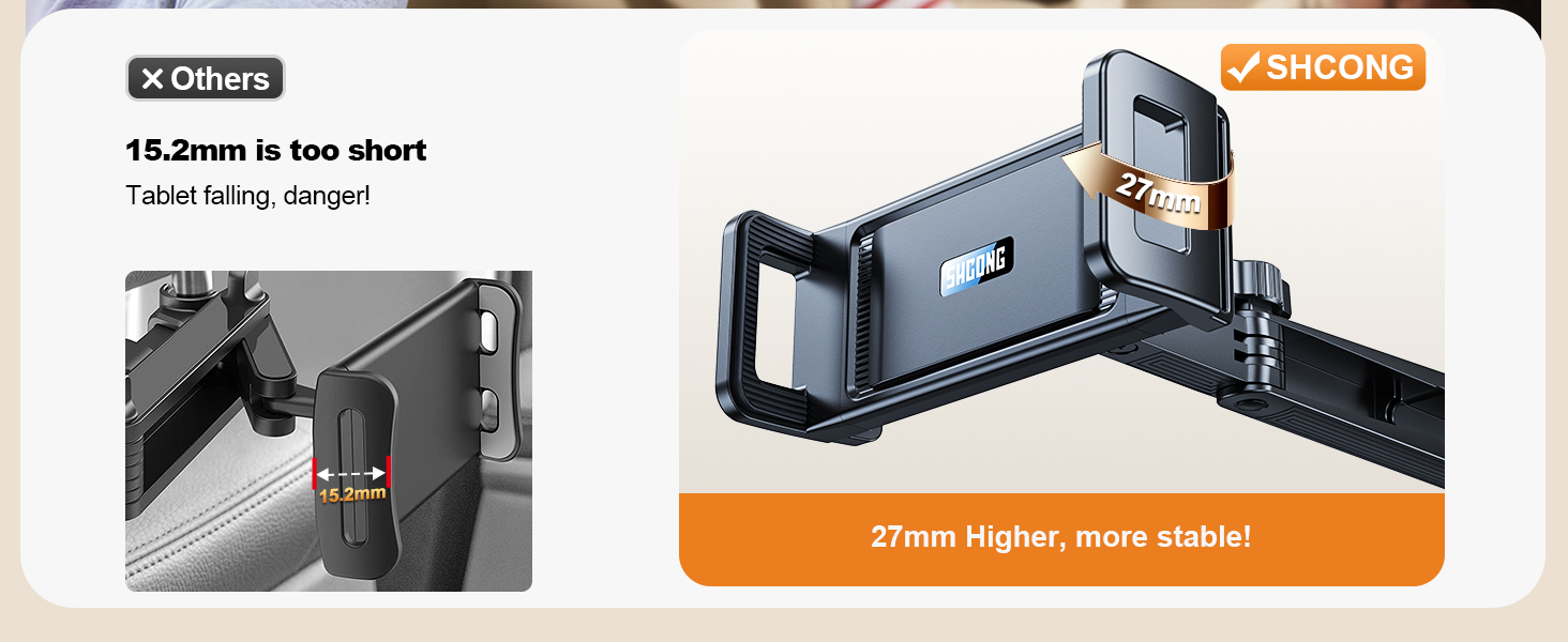 💝【سبائك ألومنيوم مطورة + محمل 1.38 كجم】من أجل حماية سلامة المعدات والأطفال، تمت ترقية حامل الكمبيوتر اللوحي لشريط دعم السيارة إلى مادة سبائك الألومنيوم، والتي اجتازت اختبار الاهتزاز المستمر بتردد 150 هرتز لمدة 5000 مرة، ✅ والحد الأقصى لقدرة الحمل هي 1.38 كجم، وهو ما يعادل القدرة على التحمل في نفس الوقت. وزن جهازي iPad مقاس 12.9 بوصة ثابت ولا يتدلى، مما يقلل الاهتزاز بشكل كبير.
