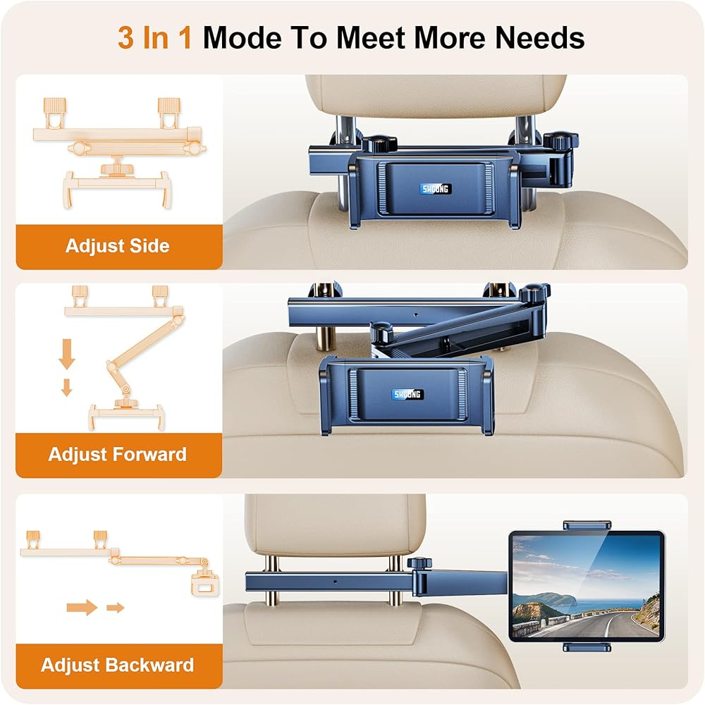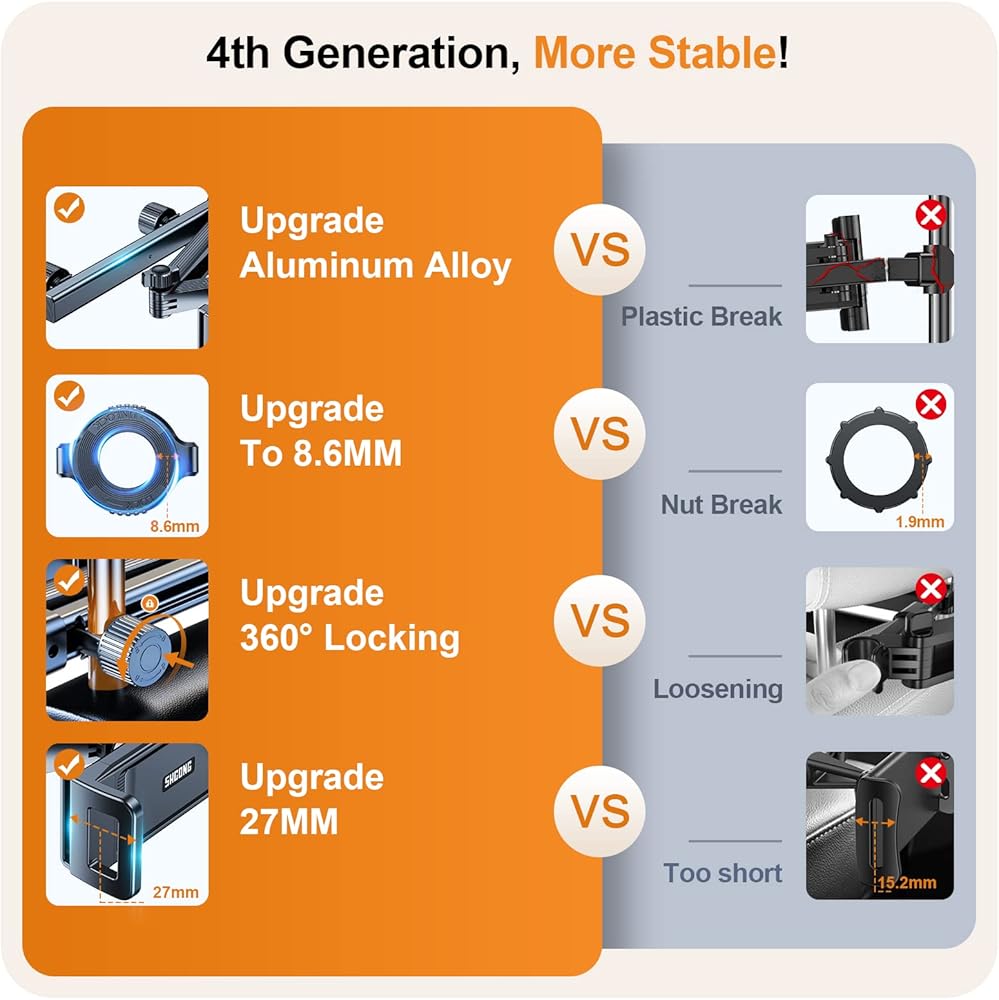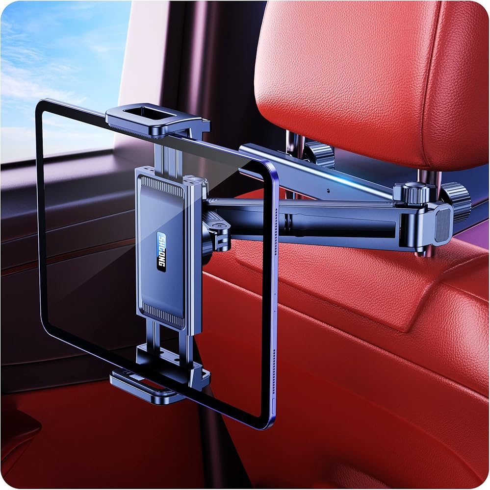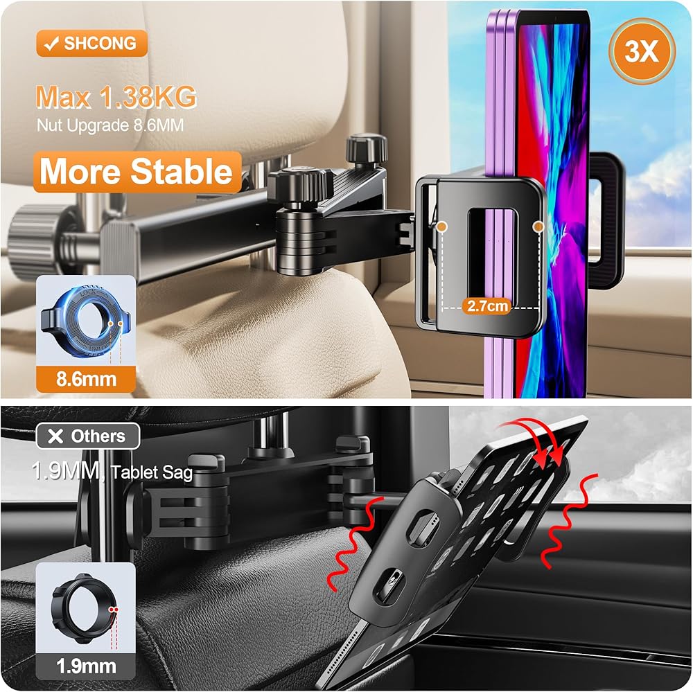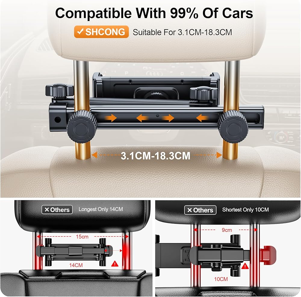 SHCONG 【2023 حامل كمبيوتر لوحي iPad الجيل الرابع للسيارة، 【قابل للتمديد 29.8 سم】، حامل سيارة iPad المقعد الخلفي للأطفال، مسند رأس عالمي بنسبة 99% لجميع الأجهزة اللوحية 4.7 ~ 12.9 بوصة، iPad Pro Air Mini