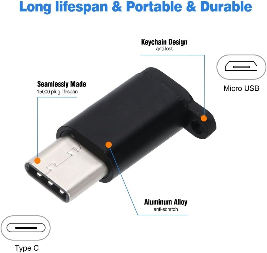 1. محول USB C إلى Micro USB: يسمح لك بالمزامنة والشحن ونقل البيانات لجهاز USB C الخاص بك باستخدام كابلات USB الصغيرة القياسية. (ملاحظة: لا يوجد توافق OTG).
