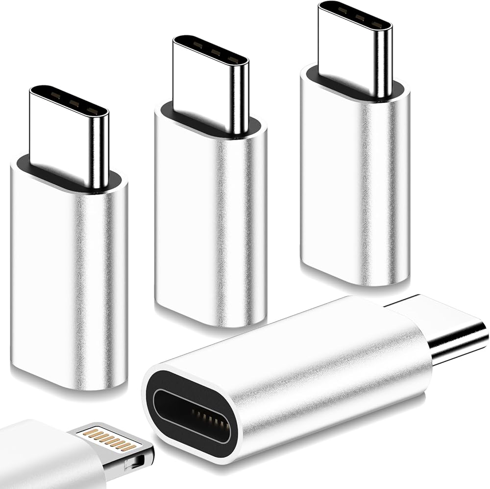4 عبوات من yootech لمحول Lightning أنثى إلى USB C ذكر، يدعم الشحن السريع ونقل البيانات بقدرة 27 وات PD، محول USB C إلى Lightning لهاتف iPhone 15 Pro Max Plus، Samsung، لأجهزة iPad، وليس للصوت/OTG، فضي
