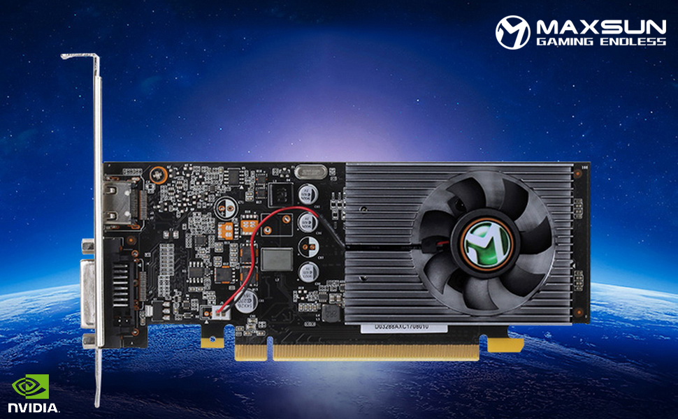 ماكس صن بطاقة رسومات فيديو جي تي 1030 2 جيجابايت GDDR5 64 بت بمنفذ PCIe 3.0 دايركت اكس 12 اي تي اكس اتش دي سي بي ريدي دي في اي HDMI من جيفوريس
