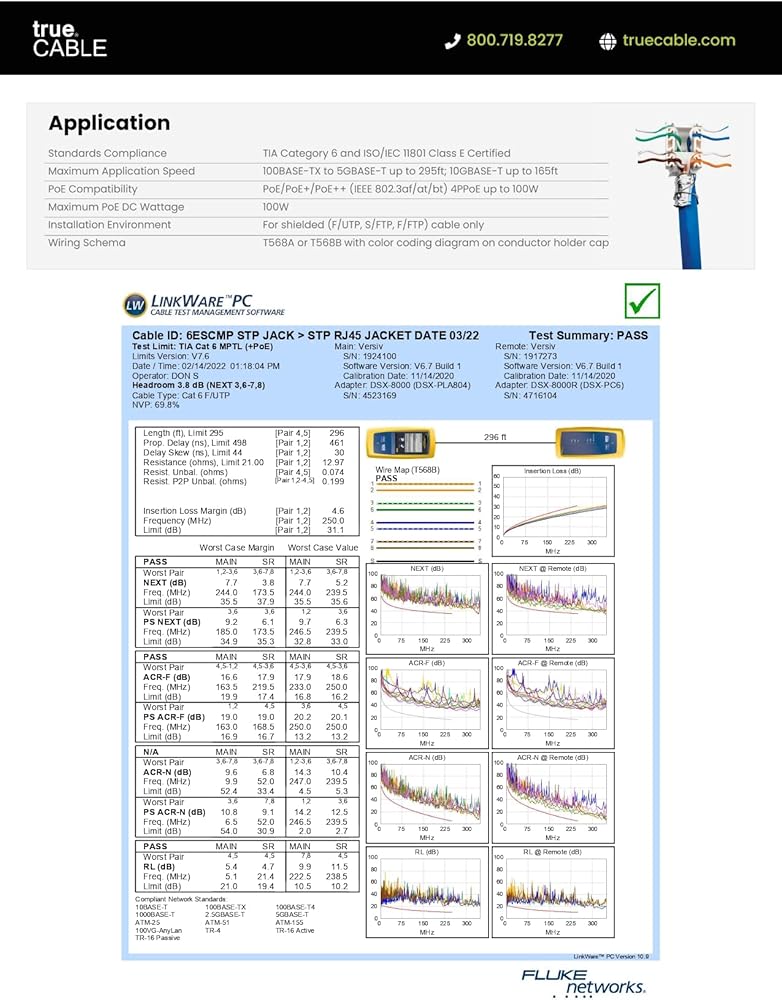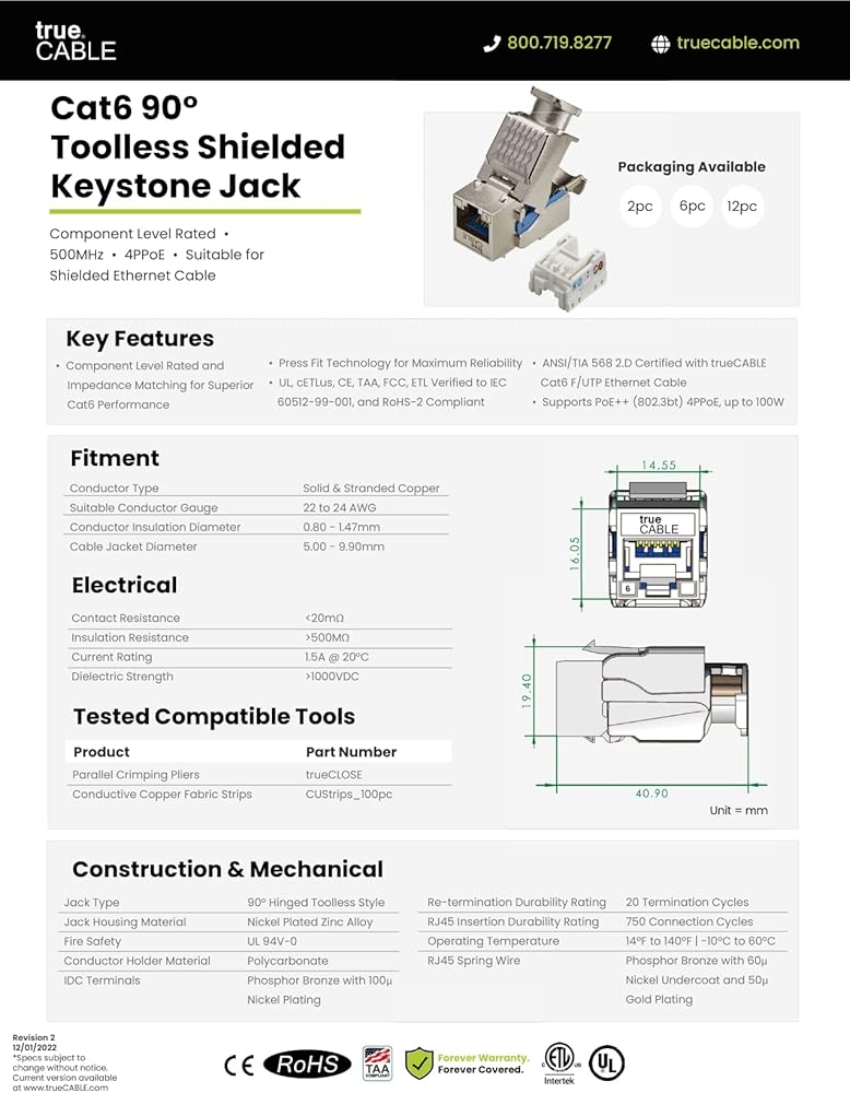 جودة مضمونة. ANSI/TIA 568 2.D معتمد من trueCABLE. مُدرج في قائمة UL، ومتوافق مع TAA، ومعتمد من ETL، ومتوافق مع RoHS-2. تم اختباره في العالم الحقيقي بواسطة مثبتين حقيقيين. مدعومة بضماننا إلى الأبد.