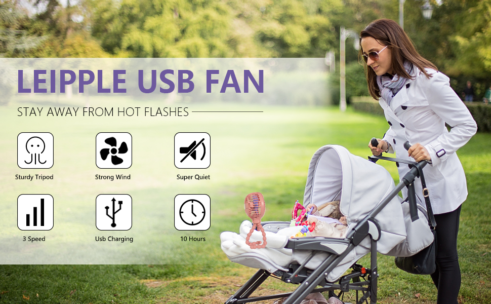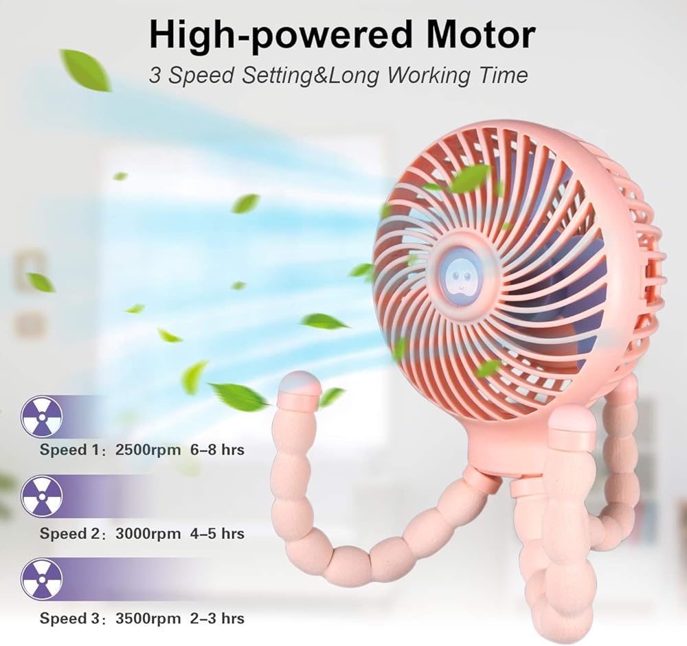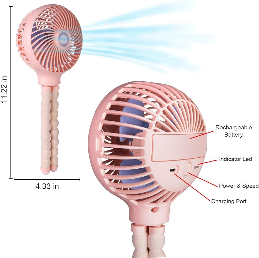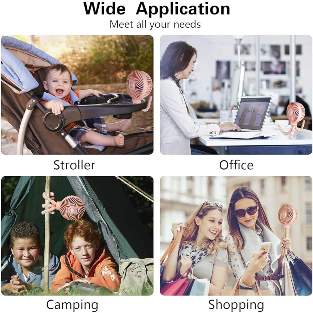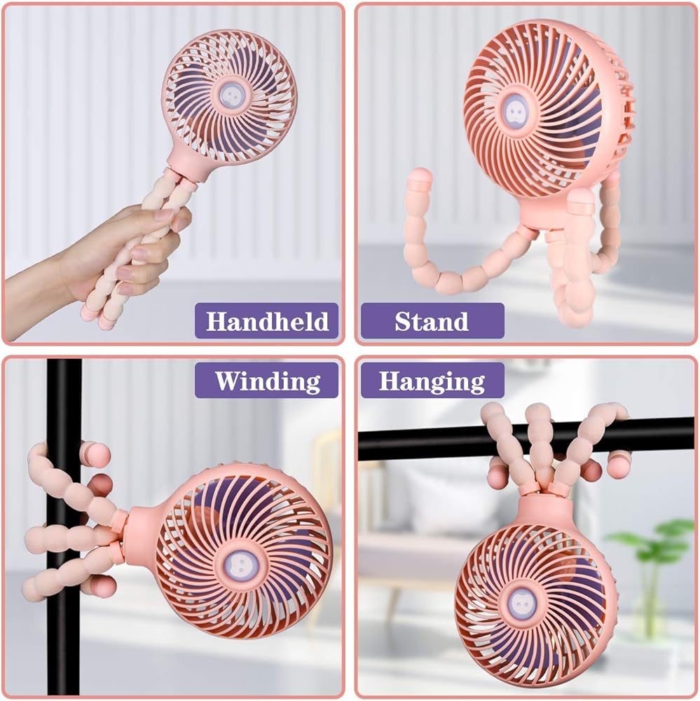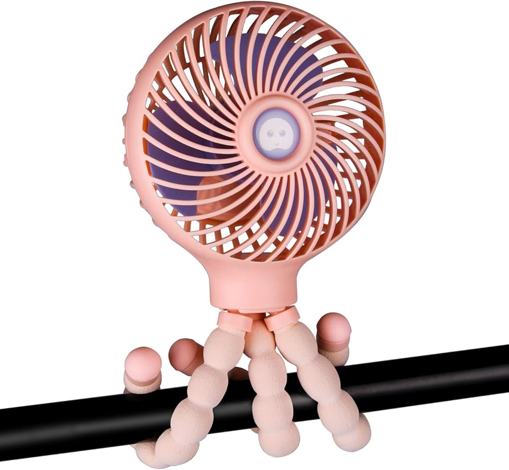 مروحة عربة الأطفال المحمولة الصغيرة من Leipple، مروحة مكتب محمولة شخصية مع حامل ثلاثي مرن، مروحة USB قابلة لإعادة الشحن قابلة للتعديل 3 سرعات للتخييم ومقعد السيارة وسرير الدراجة وصالة الألعاب الرياضية (وردي)