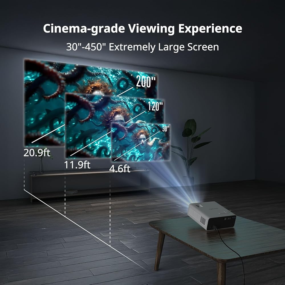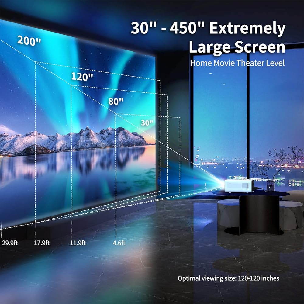 【جهاز عرض مزود بوظيفة تصحيح الانحراف والتكبير وحجم شاشة كبيرة 200 بوصة】يحتوي جهاز عرض الأفلام الداخلي WEWATCH V70 WiFi على تصحيح انحراف يدوي متقدم يمكنه ضبط الزاوية العمودية بسهولة ±15 درجة. يمكن لوظيفة ZOOM تخصيص حجم الصورة من 50% إلى 100 %. يوفر جهاز العرض الخارجي هذا حجم عرض يتراوح من 30 بوصة إلى 200 بوصة، ومسافة جهاز العرض من 1.5 م إلى 6.6 م. يمكنك بسهولة تخصيص حجم العرض الذي تفضله