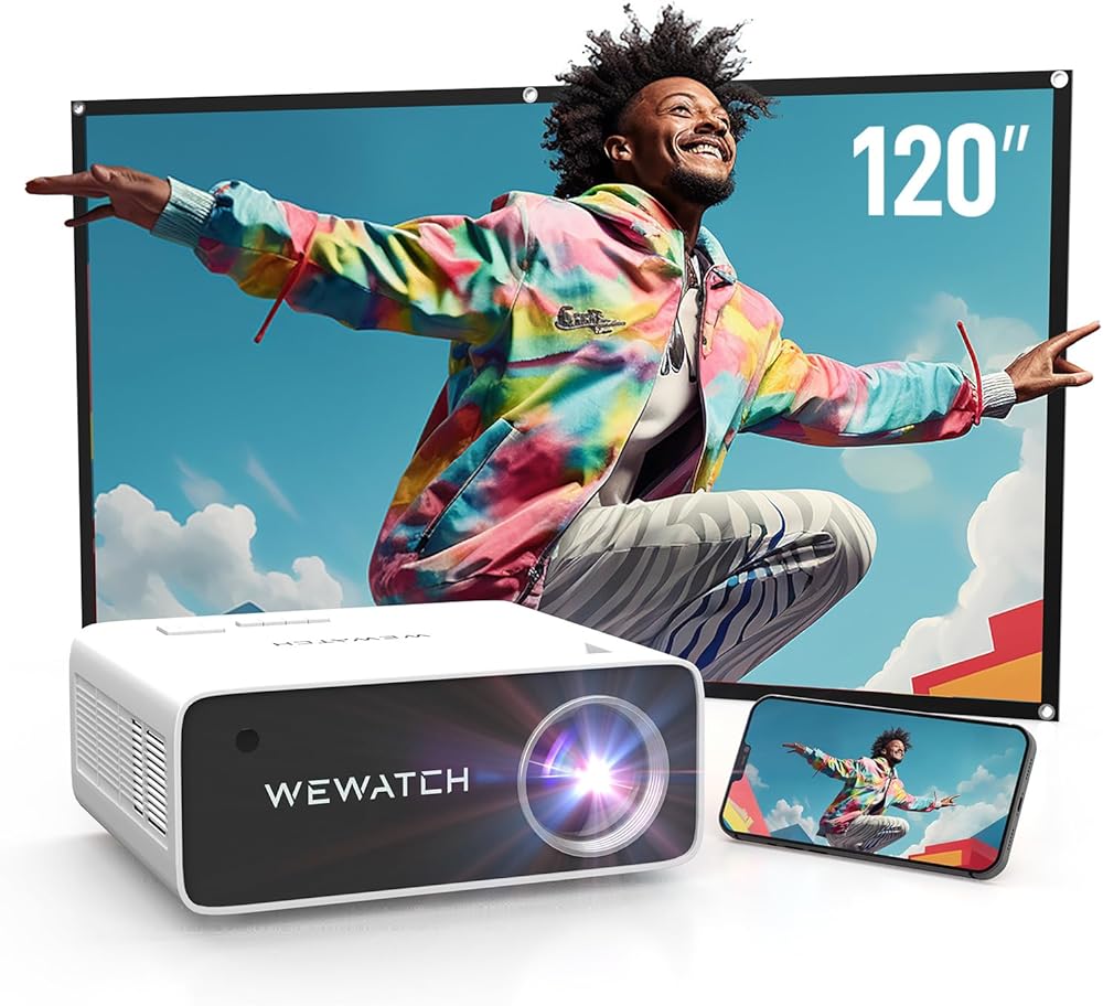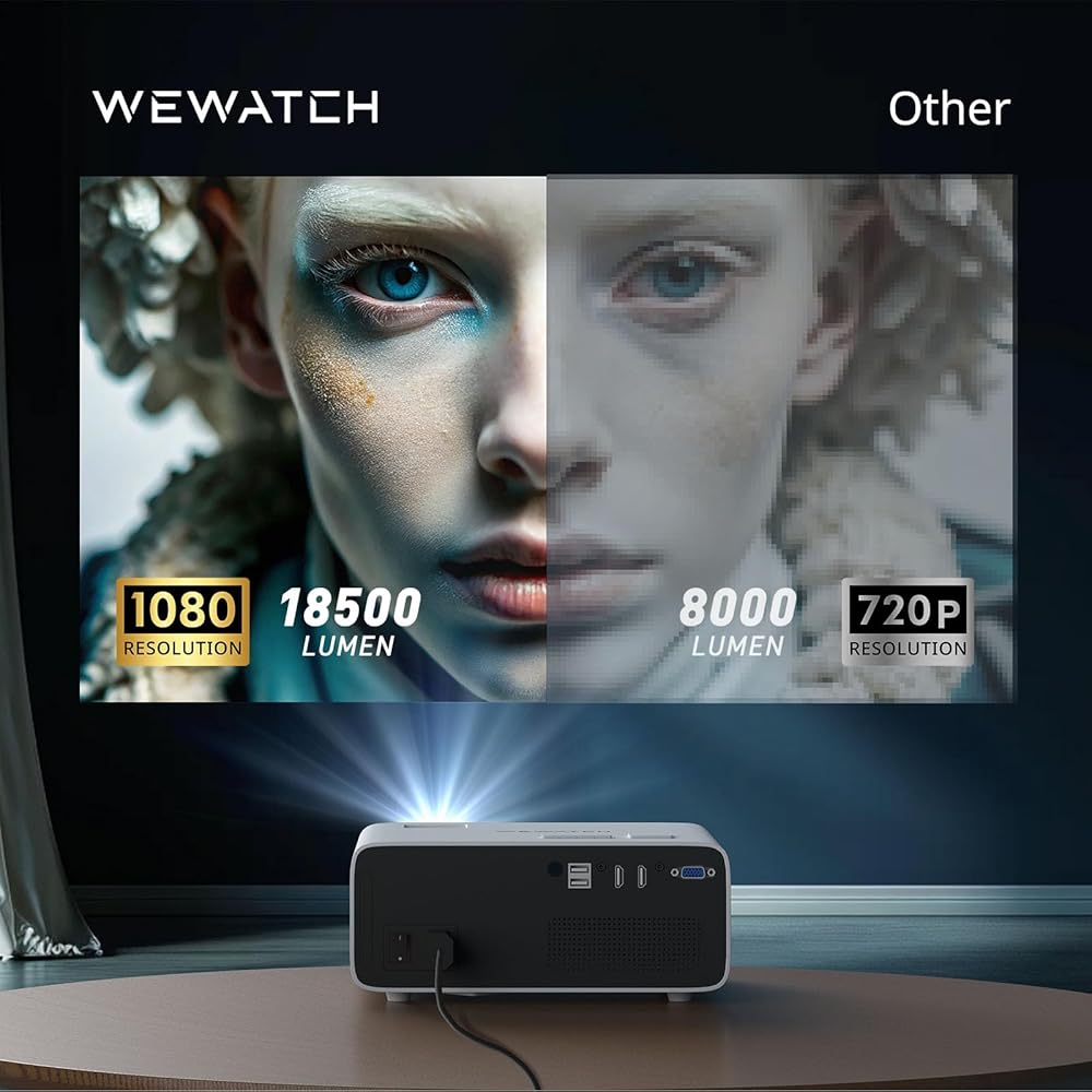 【جهاز عرض 500 لومن ANSI ونسبة تباين أصلية 1080P و1500:1]】يحتوي جهاز عرض الفيديو WEWATCH V70 على درجة سطوع عالية تبلغ 500 لومن ANSI وهو أكثر سطوعًا من أجهزة العرض الأخرى. ستوفر لك الدقة الأصلية 1920*1080P ونسبة التباين 1500:1 صورة ملونة واضحة ونابضة بالحياة. ستوفر لك شاشة العرض الكبيرة مقاس 200 بوصة تجربة سينمائية لا مثيل لها
