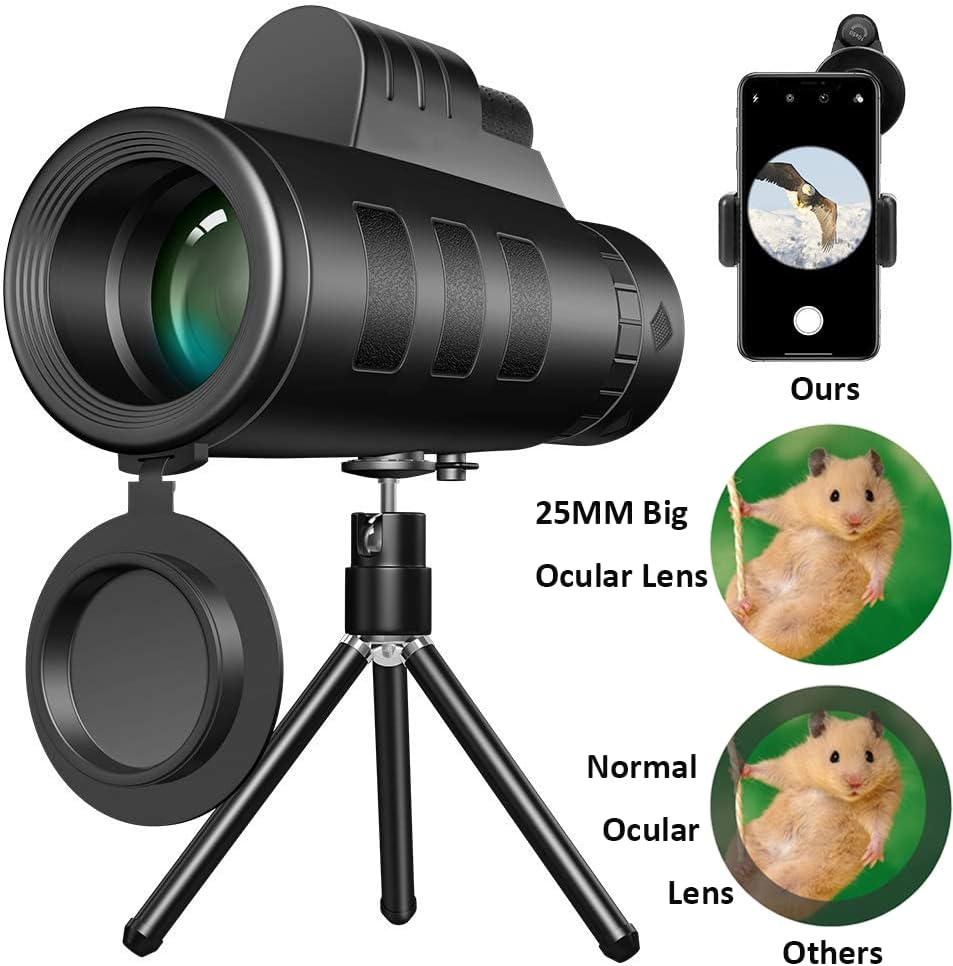 • ✅【Wide Application And Satisfaction Warranty】The Easy focusing HD monocular perfect for Hiking, Hunting, Climbing, Bird watching, Watching Wildlife and Scenery, Golf, Scope, Surveillance, concerts and travelling etc. Come with friendly customer service, 30-days hassle-free money back guarantee and LIFETIME WARRANTY. NO ANY worries about your purchase. Also a great gift for your family or friends