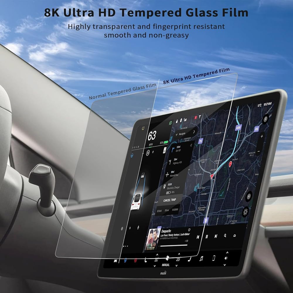 واقي شاشة طراز tesla y 2023 نفاذية عالية ومضاد للوهج: واقي الشاشة هذا مصنوع من زجاج AGC المستورد الياباني، مع نفاذية تزيد عن 99% ونفاذية ضوء قصوى تبلغ 98%. وذلك لتوفر لك تجربة قيادة أكثر راحة.