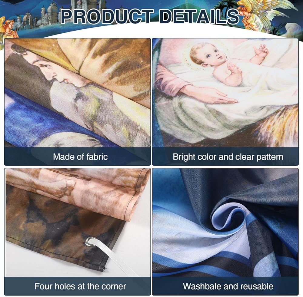 تشمل العبوة: سوف تحصل على قطعة واحدة من الخلفية الدينية لعيد الميلاد، والتي يبلغ مقاسها حوالي 73 × 43 بوصة / 185 × 110 سم، بالإضافة إلى حبل بطول 19.7 قدم؛ كبيرة بما يكفي لاستخدامها في معظم السيناريوهات لاحتياجات زينة عيد الميلاد الخاصة بك