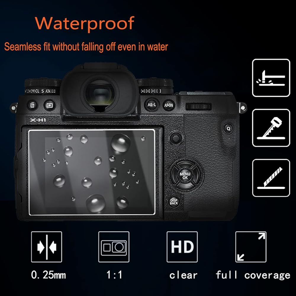 واقي LCD هذا ذاتي اللصق، ولا يترك أي أثر للسيليكون ولا يسبب ضررًا لشاشة LCD الخاصة بالكاميرا ومع ذلك يوفر شفافية عالية