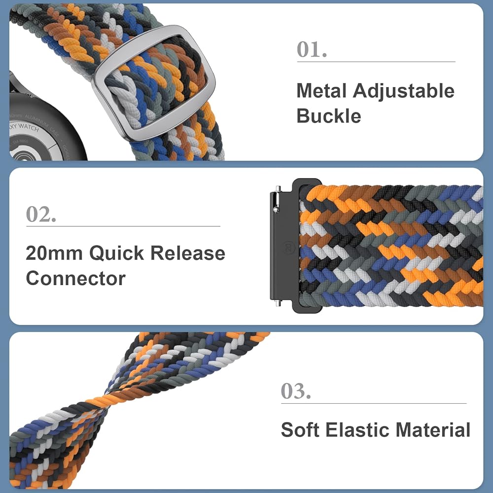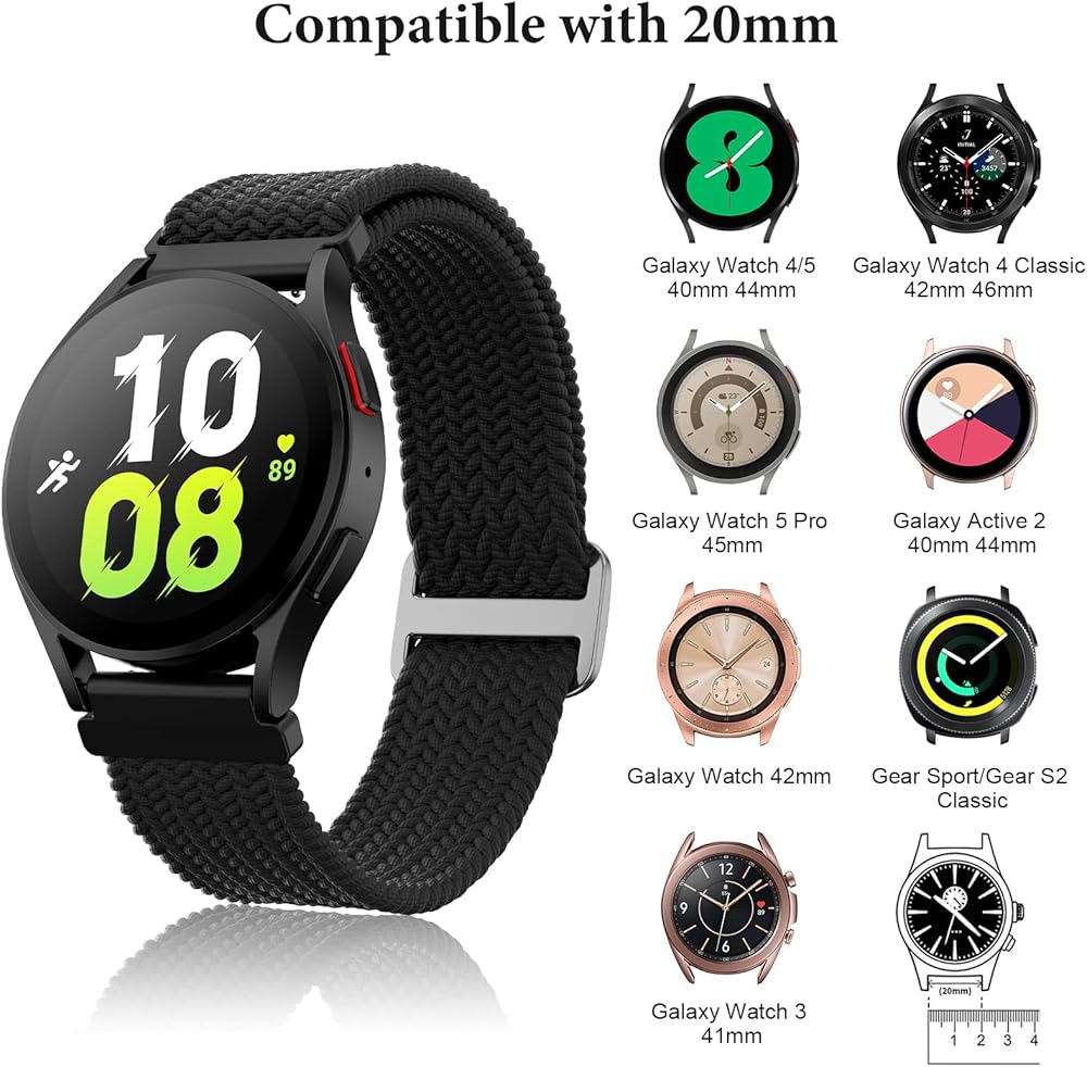 【الموديلات المتوافقة】 أحزمة ABOVEACC المضفرة متوافقة مع ساعة Samsung Galaxy Watch 6 40 مم 44 مم/Samsung Galaxy Watch 6 Classic 43 مم 47 مم/Samsung Galaxy Watch 5 40 مم 44 مم/ Galaxy Watch 5 Pro 45 مم، Galaxy Watch 4 40 مم 44 مم/ Galaxy Watch 4 Classic 42 مم 46 مم، Galaxy Watch Active 2 40mm 44mm/ Galaxy Watch Active 40mm، Galaxy Watch 3 41mm/ Galaxy Watch 42mm، Gear S3/ S2/ Sport/ Classic، Garmin Vivoactive 3/ Vivomove/ HR، وأي ساعة ذكية أخرى مع عروات ساعة بعرض 20 مم.