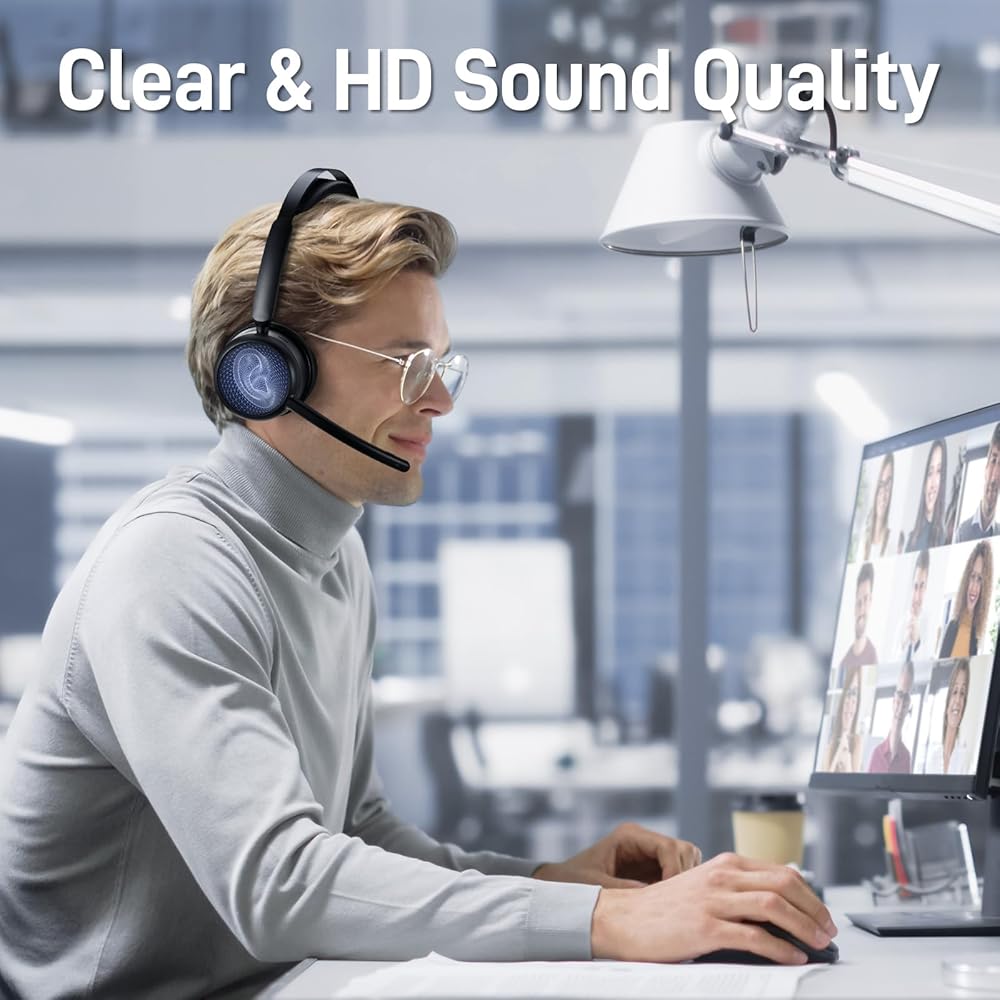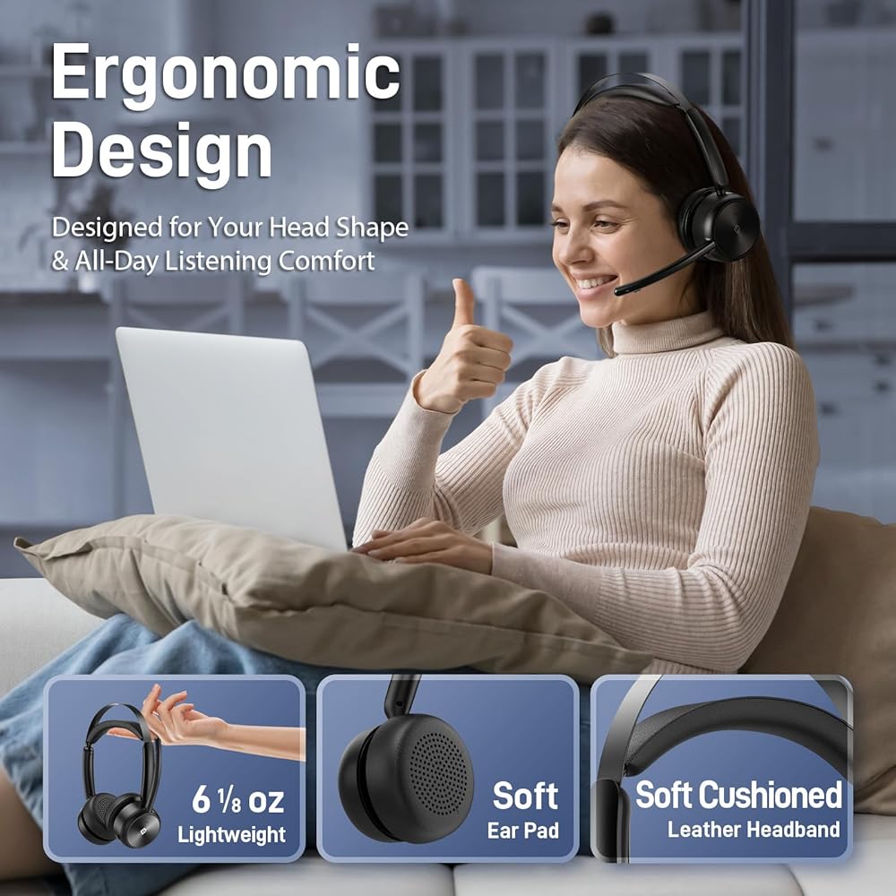 [مريحة، وخفيفة الوزن، ومريحة طوال اليوم] تزن سماعة البلوتوث HS80 175 جرامًا فقط (6.17 أونصة)، وتتميز عصابة الرأس بتصميم منفصل مع تعديل قابل للسحب على كلا الجانبين، مما يقلل الضغط على الرأس والأذن. وسائد الأذن الناعمة مصنوعة من الإسفنج الذكي والجلد البروتيني الاصطناعي، مما يوفر راحة طوال اليوم وتهوية ممتازة. تم تصميم سماعة الرأس HS80 Bluetooth لجلسات اتصال ممتدة، مع كون الراحة محورًا رئيسيًا بناءً على بحث شامل.