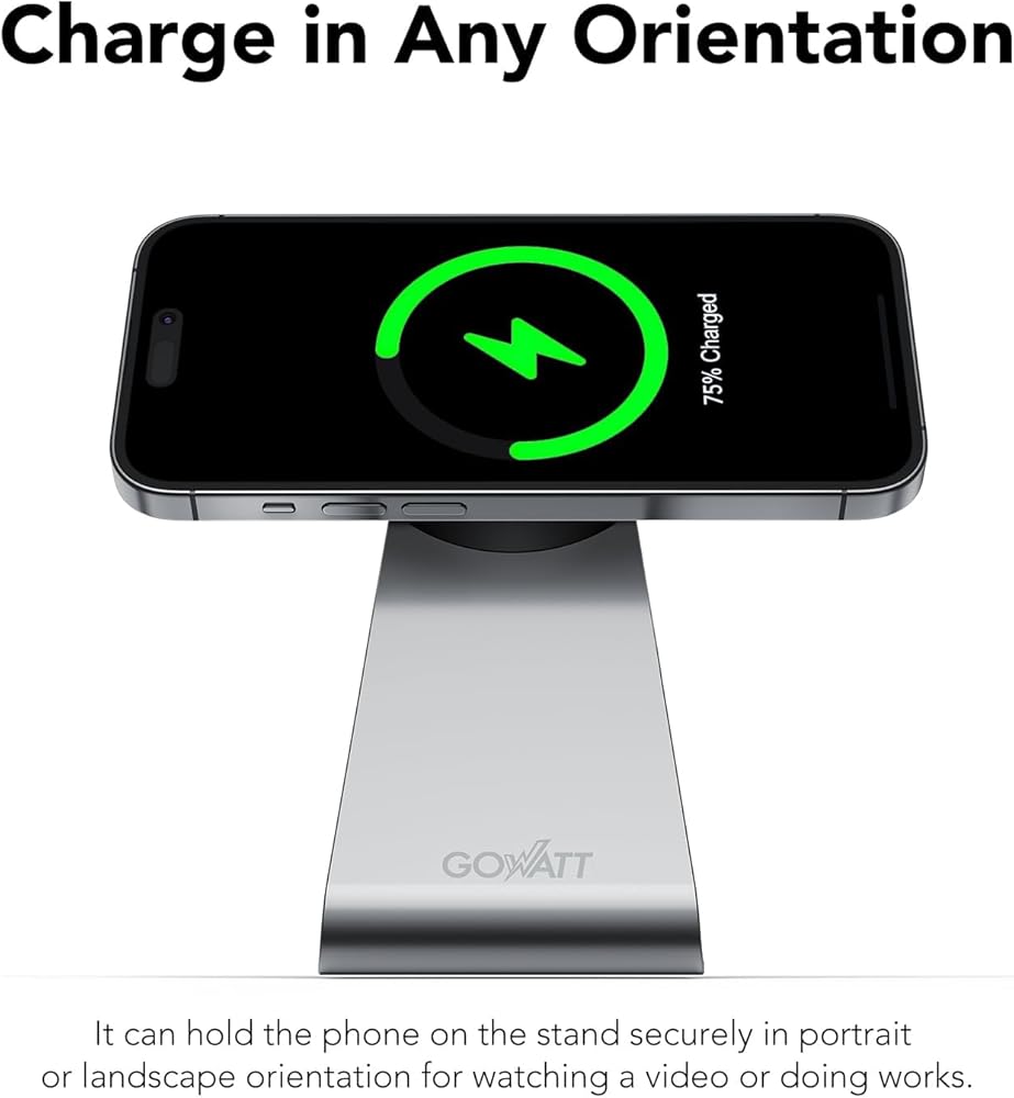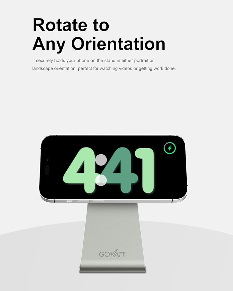 الشحن في أي اتجاه - يمكنه حمل الهاتف على الشاحن المغناطيسي بشكل آمن في الاتجاه الرأسي أو الأفقي لمشاهدة الفيديو أو القيام بالأعمال.