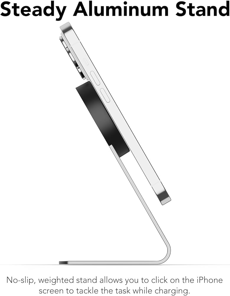 حامل ألومنيوم ثابت - حامل مرجح مانع للانزلاق يسمح لك بالضغط على شاشة الهاتف للتعامل مع المهمة أثناء الشحن.