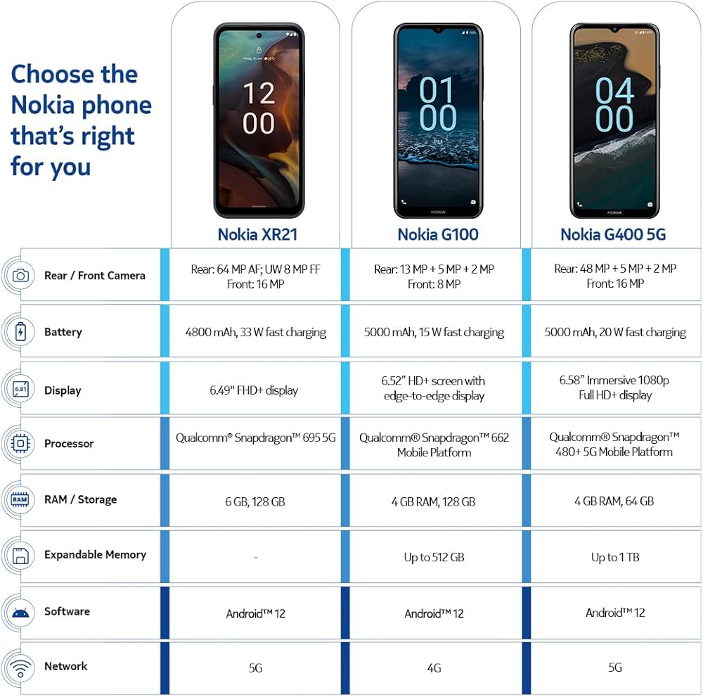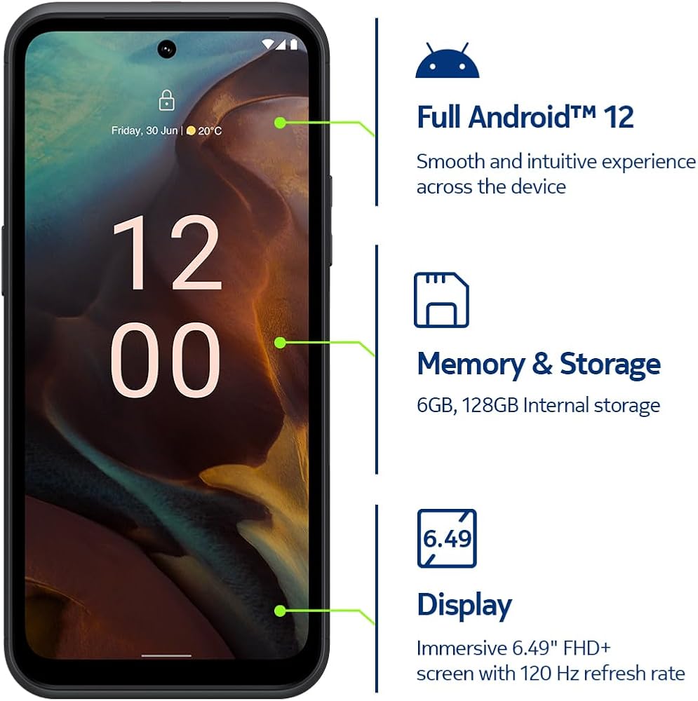 نوكيا XR21 5G | أندرويد 12 | هاتف ذكي مفتوح | ثنائي الشريحة | النسخة الأمريكية | 6/128 جيجابايت | شاشة 6.49 بوصة | كاميرا مزدوجة 64 ميجابكسل | سواد منتصف الليل