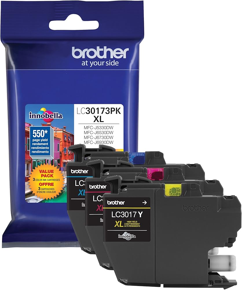 خراطيش حبر Brother Printer LC30173PK عالية الإنتاجية مقاس XL - 1 قطعة: حبر سماوي/أرجواني/أصفر