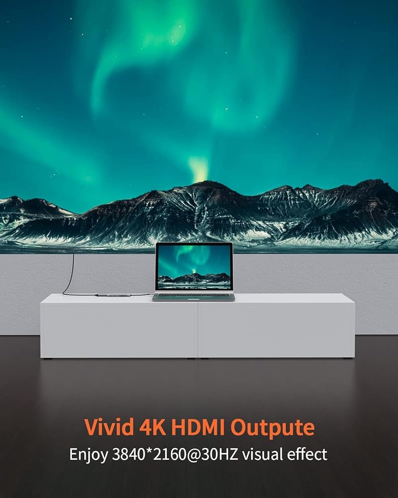 مخرج HDMI عالي السرعة 4K: يحتوي محول USB C هذا على منفذ HDMI 4K@30 هرتز، يمكنك الاستمتاع بفيديو تأثير ثلاثي الأبعاد حيوي بدقة عالية من جهاز الكمبيوتر الخاص بك بمنفذ C إلى الشاشة الخارجية. يدعم منفذ HDMI تلفزيون LCD بشاشة كبيرة أو شاشة عرض متوافقة مع إخراج 4K Max
