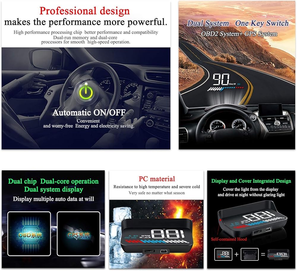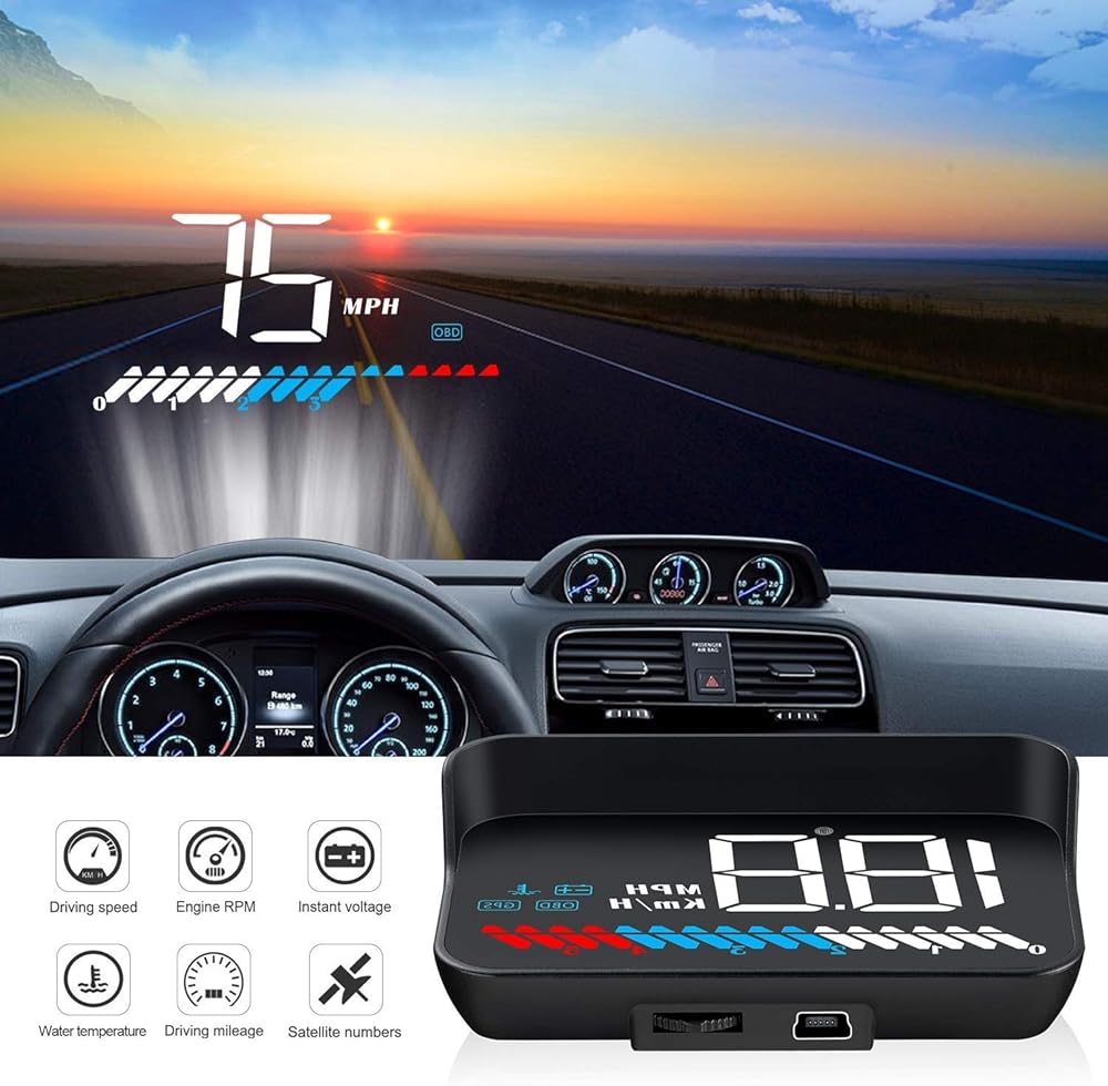 شاشة بسيطة】سرعة السيارة + دورة في الدقيقة وشاشة عالية الدقة، وظيفة عملية، تتيح لك قيادة أكثر راحة لفترة طويلة. (التوصيل والتشغيل -- متاح لسيارات 95% مع واجهة OBD2 / GPS) تقنية نانو - بروجكتور عالي النقاء للقضاء على الانعكاسات غير المرغوب فيها ويمكن أن تجعل معلومات العرض أكثر حدة وضع ضبط سطوع الشاشة التلقائي واليدوي، وأكثر سهولة في التحكم في القشرة المعدنية.