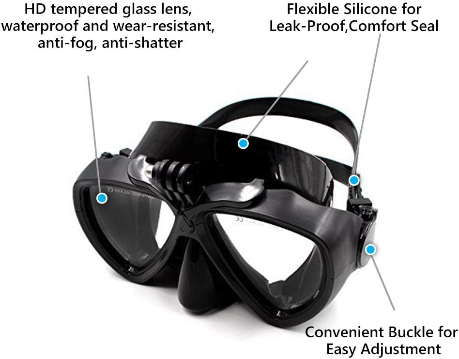 زجاج عالي الشفافية مضاد للضباب: زجاج مقسى عالي الشفافية ومقاوم للصدمات ومعالجة مضادة للضباب يسمح لك بالاستمتاع بأقصى قدر من الرؤية تحت الماء، خاصة للمبتدئين، مما يمنحك تجربة واضحة تحت الماء. يوفر التصميم الزجاجي صورًا أفضل.