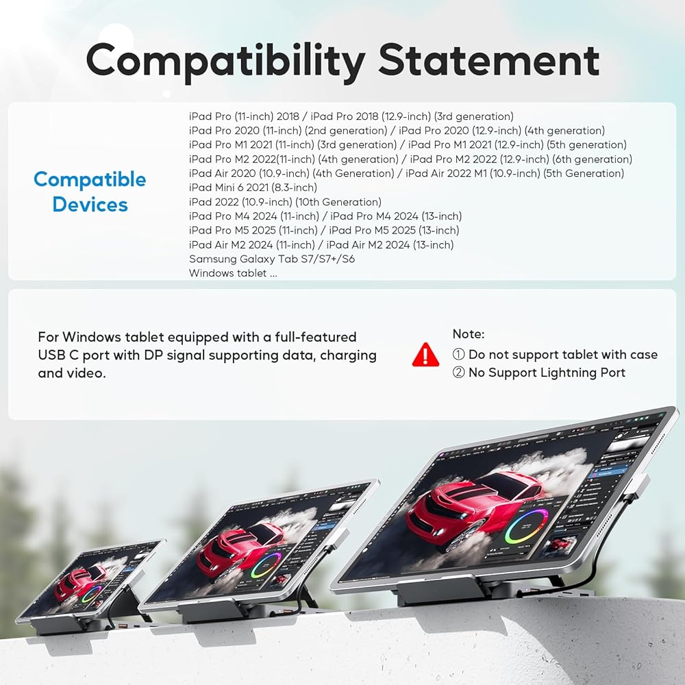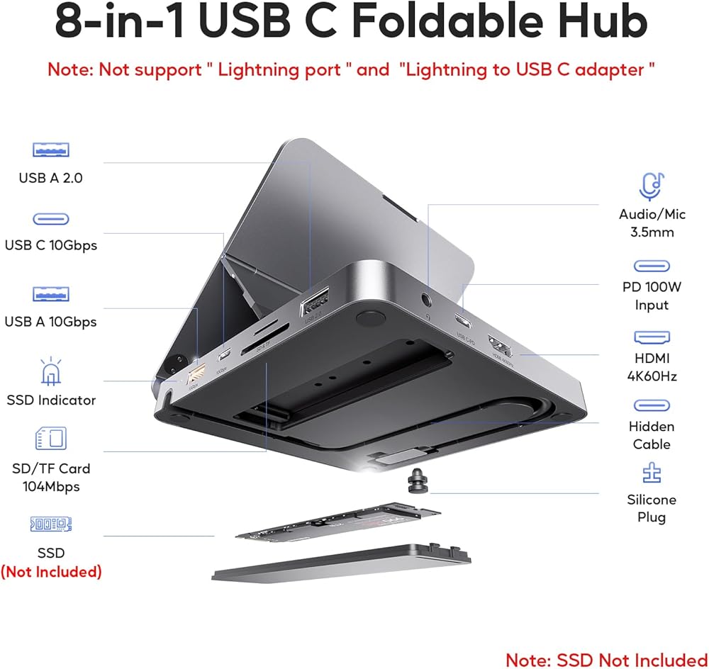 موزع USB C لجهاز iPad Pro، محطة إرساء PULWTOP لجهاز iPad M4، 4K@60 هرتز HDMI، محور ألومنيوم 100 واط PD مع حاوية SSD، قاعدة حامل لجهاز i-Pad Mini الجيل السادس، لا يوجد دعم لمنفذ Lightning