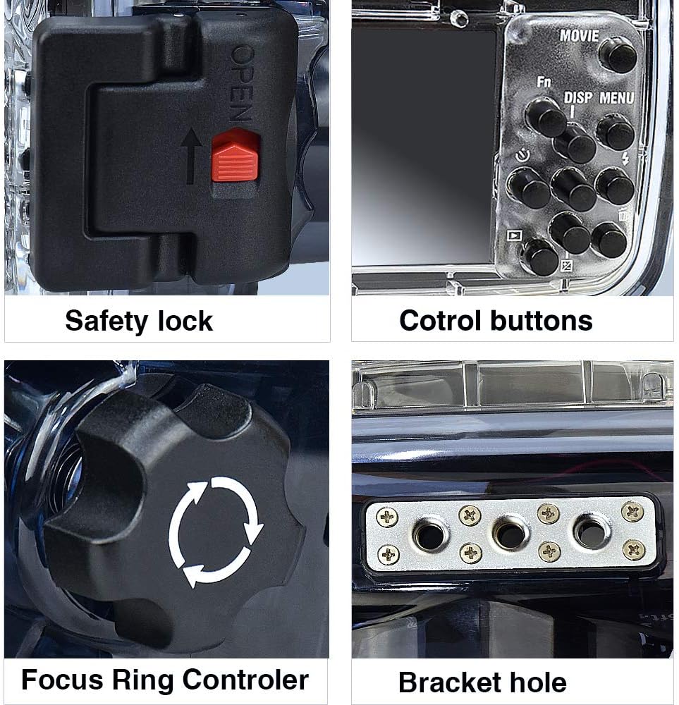 يعد بيت الضفادع البحرية تحت الماء جيلاً جديدًا من المنتجات خفيفة الوزن وميسورة التكلفة لأي مصور تحت الماء، ومصور صور صور لطحالب المياه وأي حماس آخر للصور أو الألعاب الرياضية ذات الصلة بالمياه. هذه الوحدة ستبقي الكاميرا جافة وعملية في جميع ظروف الطقس. هام: لا يمكن الوصول إلى التحكم في عجلة المركز، ولكن التنقل عن طريق الضغط لأعلى وأسفل واليسار واليمين. تحكم في إمكانية الوصول: زر تشغيل/إيقاف تشغيل تشغيل زر تشغيل تشغيل تشغيل تشغيل تشغيل زر زر زر تشغيل تشغيل تشغيل زر زر زر زر تشغيل زر FN زر مركز / زر تشغيل زر تشغيل/إيقاف