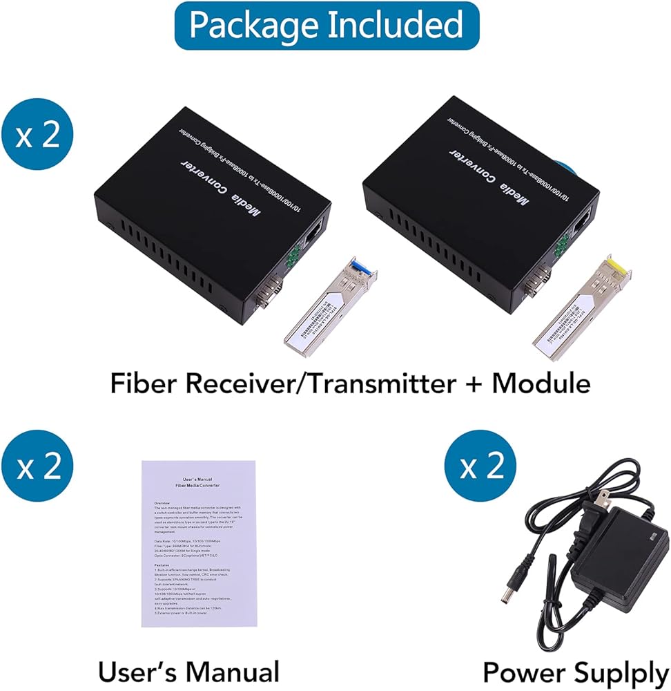 3. نوع الألياف: وضع واحد، موصل الألياف: ألياف LC واحدة، الطول الموجي: 1310 نانومتر، الوصول: 20 كم، وزن مصدر الطاقة المتضمن: 0.35 كجم