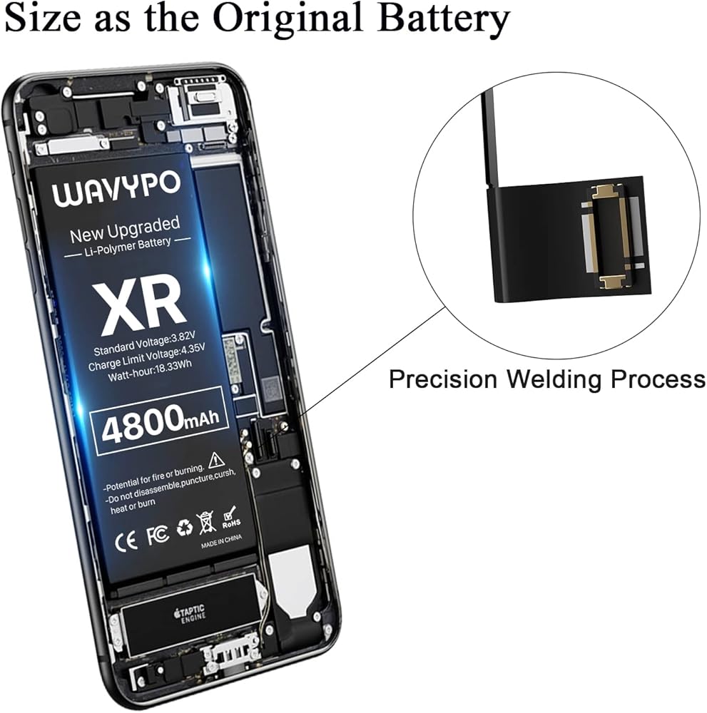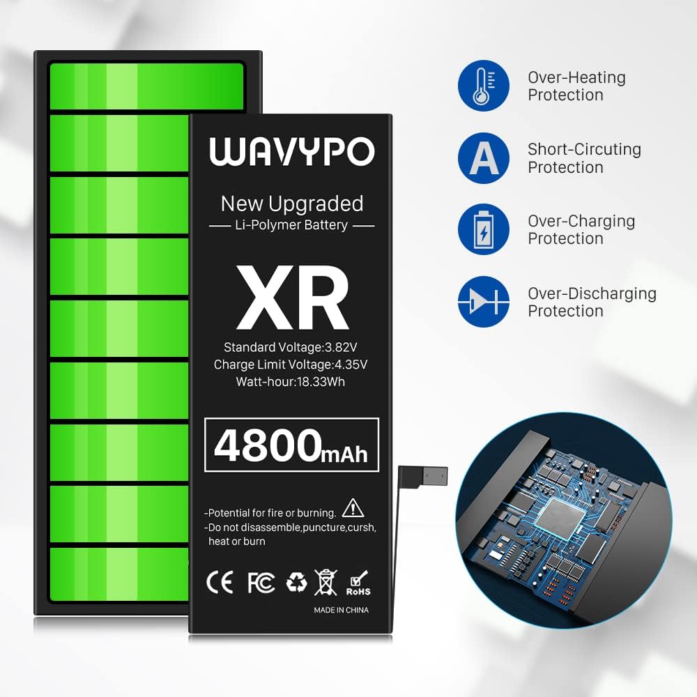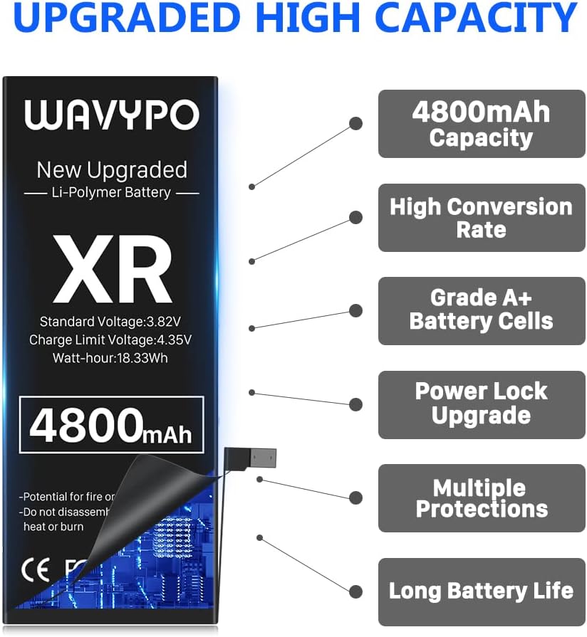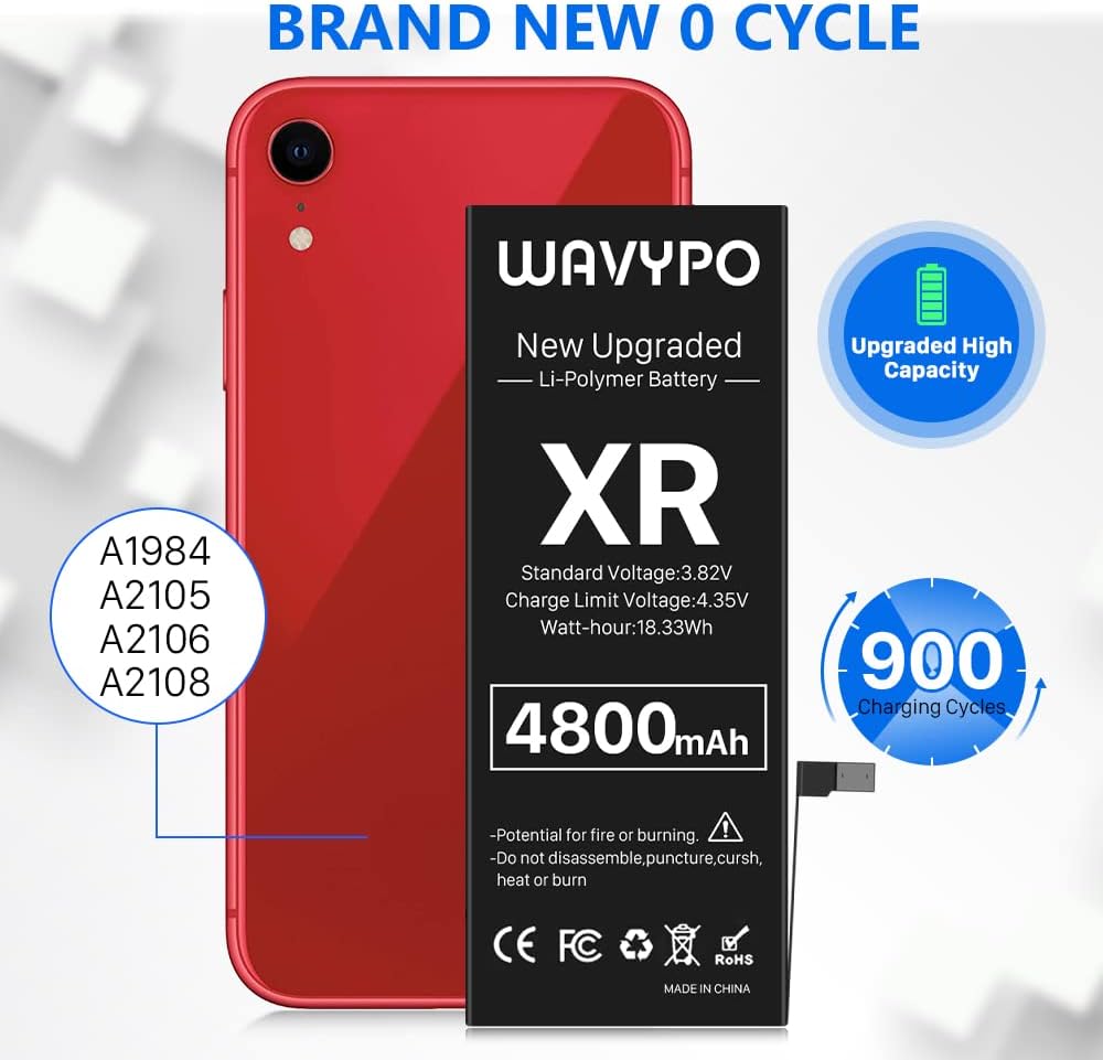 بطارية WAVYPO بقدرة 4800 مللي أمبير في الساعة لهاتف iPhone XR، نسخة جديدة مطورة ذات سعة عالية، استبدال بطارية دورة 0 لهاتف iPhone XR A1984 A2105 A2106 A2108 مع مجموعة أدوات بديلة كاملة وتعليمات