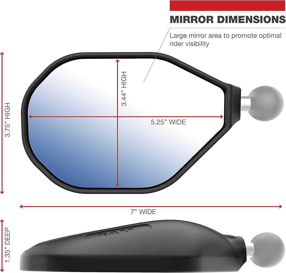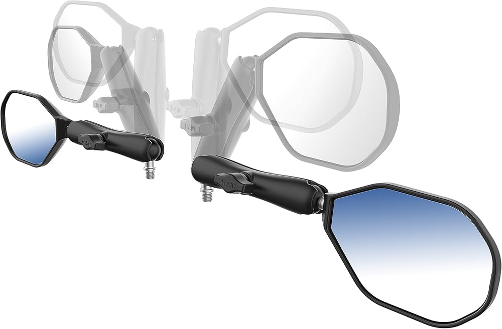 طقم مرايا قوية مثبتة على ذاكرة الوصول العشوائي (RAM) بقواعد M10-1.25 وأذرع طويلة RAM-B-349-C-465RL