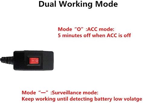 زر تبديل وضع التشغيل المزدوج مدمج لراحتك: 1. وضع تشغيل ACC، إيقاف تشغيل 5 دقائق عند إيقاف تشغيل ACC في سيارتك؛ 2. وضع عمل المراقبة، استمر في العمل حتى يكتشف جهد البطارية المنخفض (11.6 فولت).