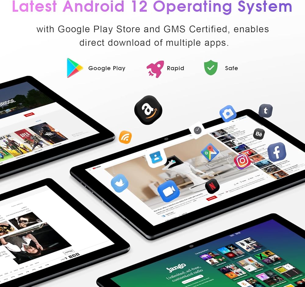 【أحدث نظام أندرويد 12】هذا الجهاز اللوحي مجهز بأحدث نظام تشغيل أندرويد 12. إنها ترقية مؤكدة لكل من Android 10 وAndroid 11. يعمل المعالج رباعي النواة القوي مع نظام Android 12 للأجهزة اللوحية، مما يوفر لك تجربة استخدام أكثر سلاسة.