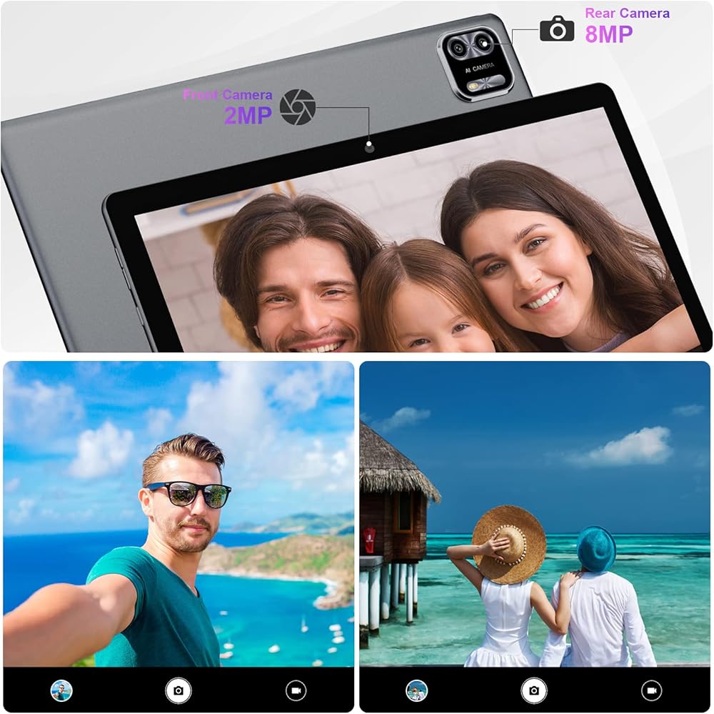 【شاشة عالية الدقة كبيرة】توفر دقة 1280*800 وضوحًا أكثر إشراقًا للألوان، وتوفر الشاشة الكبيرة مقاس 10.1 بوصة تجربة مشاهدة أكثر راحة. يساعدك الجمع بين الكاميرا الأمامية بدقة 2 ميجابكسل + الكاميرا الخلفية بدقة 8 ميجابكسل لهذا التابلت على تسجيل اللحظات الجميلة في حياتك طوال الوقت.