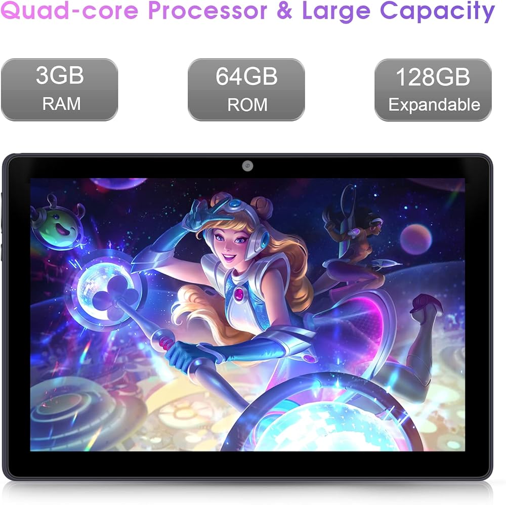 【ذاكرة كافية】يحتوي جهاز Android اللوحي الخاص بنا على ذاكرة وصول عشوائي بسعة 3 جيجابايت وذاكرة للقراءة فقط بسعة 64 جيجابايت. يمكنه دعم بطاقة ذاكرة SD تصل سعتها إلى 128 جيجابايت. يتوافق الجهاز اللوحي مقاس 10 بوصات بشكل مثالي مع YouTube وSkype وG-mail والتطبيقات الأخرى، مما يوفر مساحة واسعة لاستخدامك اليومي.