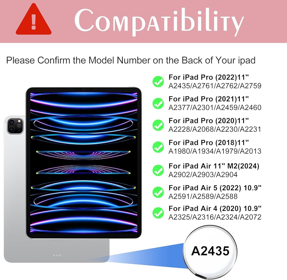 ✅توافق الحافظة: حافظة لوحة المفاتيح متوافقة مع iPad Air 5 (2022) 10.9 بوصة/iPad Air4 (2020) 10.9 بوصة/iPad Pro 11 بوصة (2022/2021/2020/2018)، رقم الطراز هو A2591/A2589/A2588 -A2325/A2316/A2324/A2072-A2435/A2761/A2762/A2759-A2377/A2301/A2459/A2460-A2228/A2068/A2230/A2231-A1980/A1934/A1979/A2013. يمكن طيها مثل الكتاب ويتم فرده مثل كمبيوتر صغير، وسهل الحمل، وهو مثالي للعمل.♐ يرجى التحقق من الجزء الخلفي من أجهزتك قبل الشراء (لا يوجد قلم متضمن)