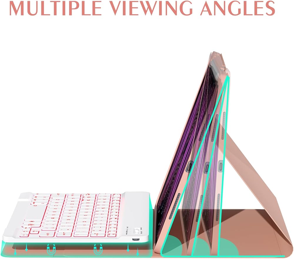 ✅[لوحة مفاتيح بإضاءة خلفية] يتم فصل لوحة المفاتيح المغناطيسية والحافظة، ويتم توصيلهما مغناطيسيًا، ويمكن إزالة لوحة المفاتيح من الحافظة. 3 مستويات من السطوع و7 ألوان نابضة بالحياة تجعل الكتابة ممتعة وسهلة في الظلام أو الضوء. يمكن ربط لوحة مفاتيح iPad 10.9/11 بوصة بالحافظة مغناطيسيًا، وإذا لم تكن هناك حاجة إليها، يمكن إزالتها. اتصال BT سهل التشغيل